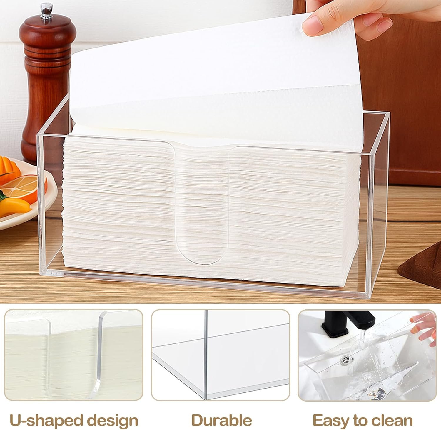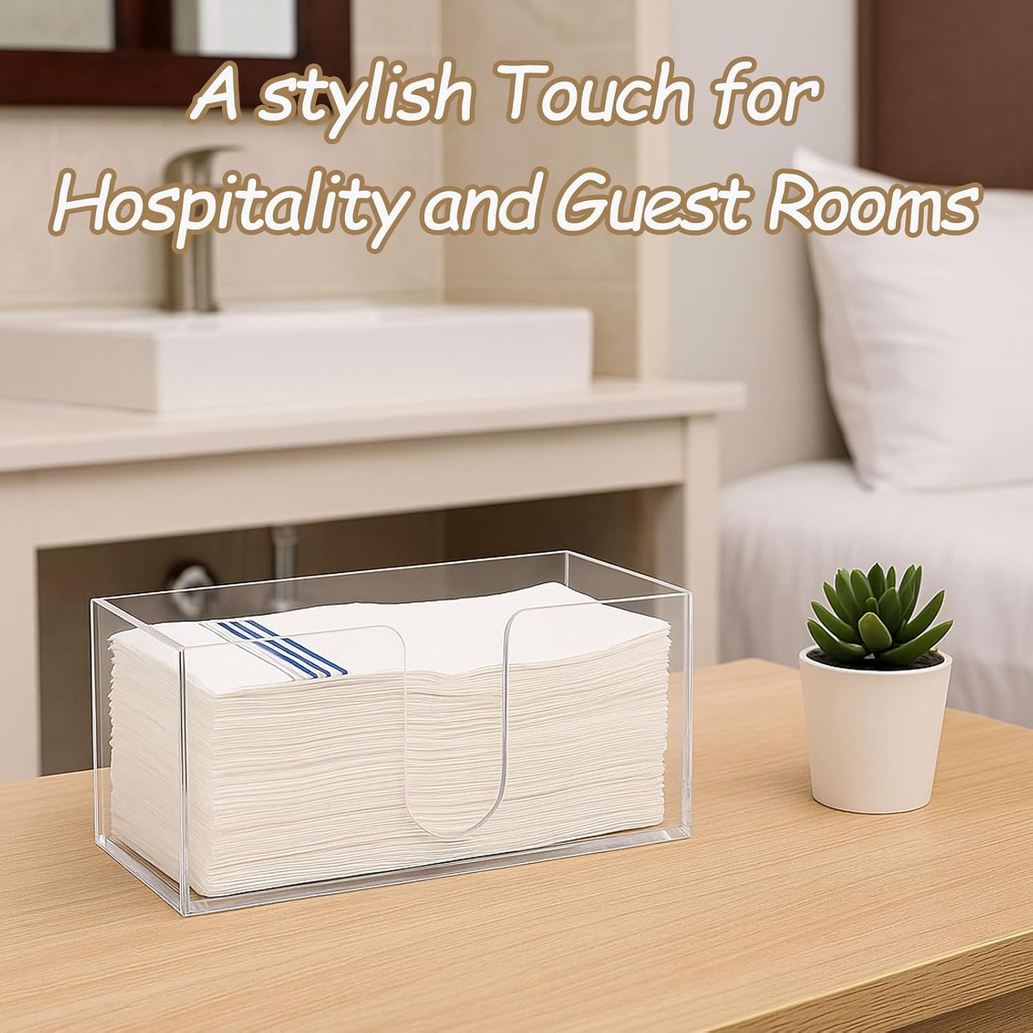 Versatile Applications: Suitable for home, bathroom, kitchen, guest room, office, hotel, or any public space. Whether used as a countertop napkins dispenser, acrylic napkin holder bathroom, or acrylic hand towel holder—it keeps things tidy and elegant