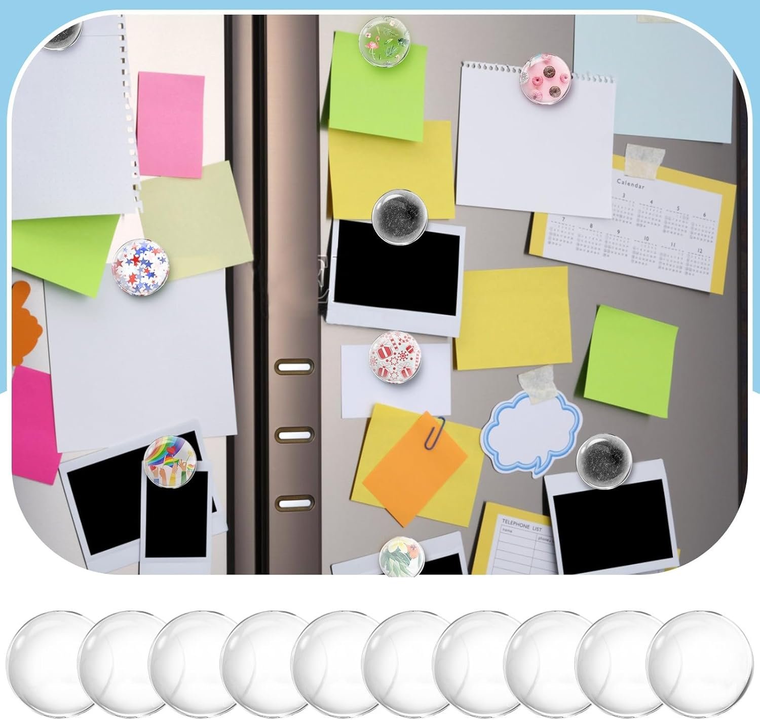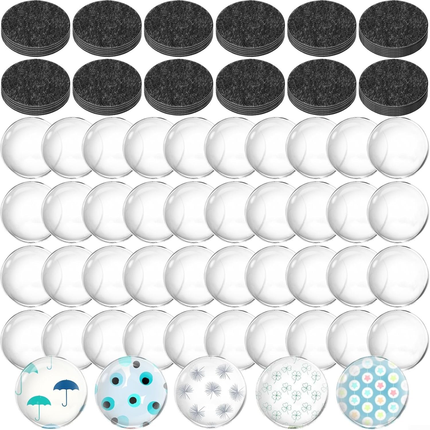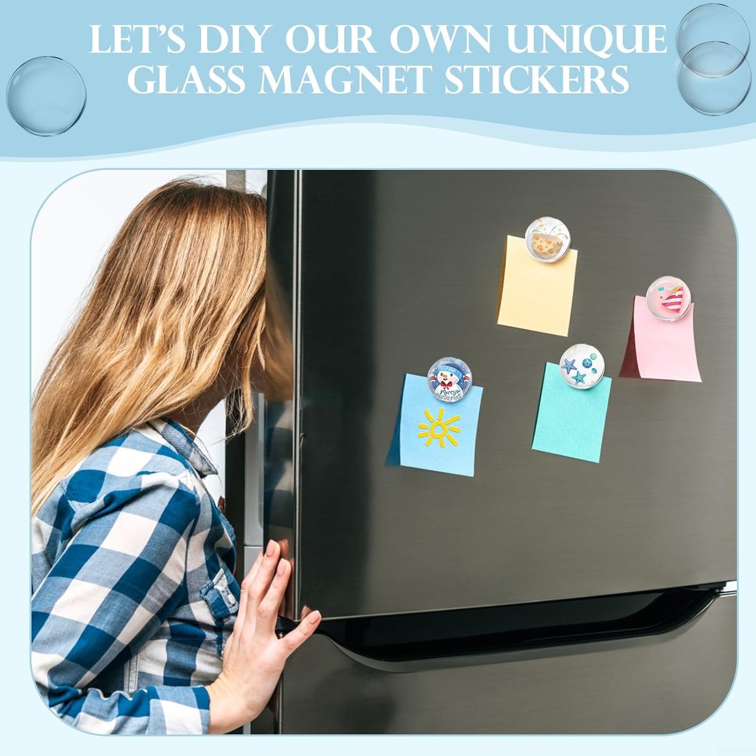 SIZE AND PACKAGING: Each small magnet measures approx. 1 inch/25 mm in diameter. 62 pieces of 1 inch clear glass cabochon clear glass domes, sufficient quantity to meet your different needs for making DIY fridge magnets and other crafts.