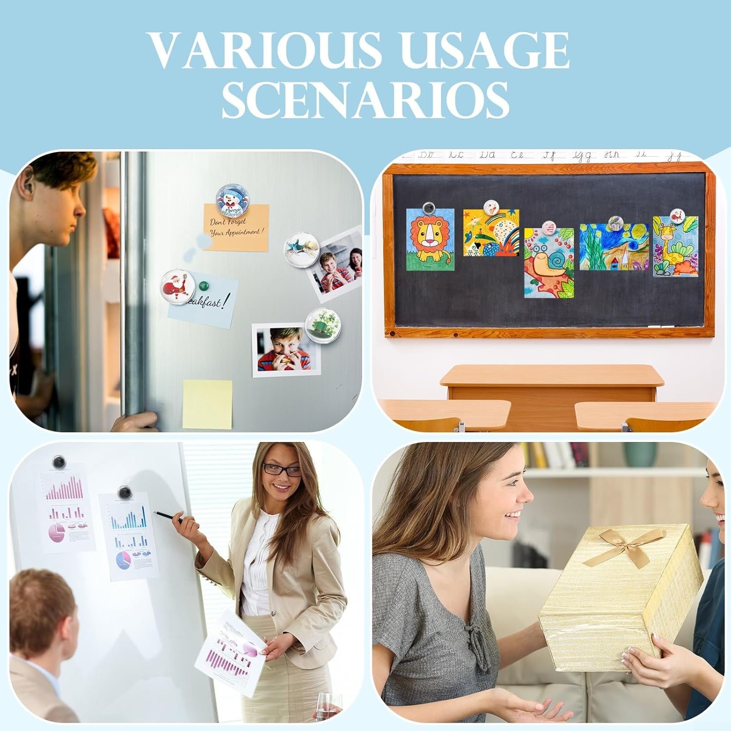 MULTI-PURPOSE: These fridge magnets are versatile and can securely attach a variety of items such as photos, messages, postcards, documents, business cards, and shopping lists to most metal or magnetic flats, including refrigerators, washing machines, microwaves, magnetic dry erase boards, and lockers.