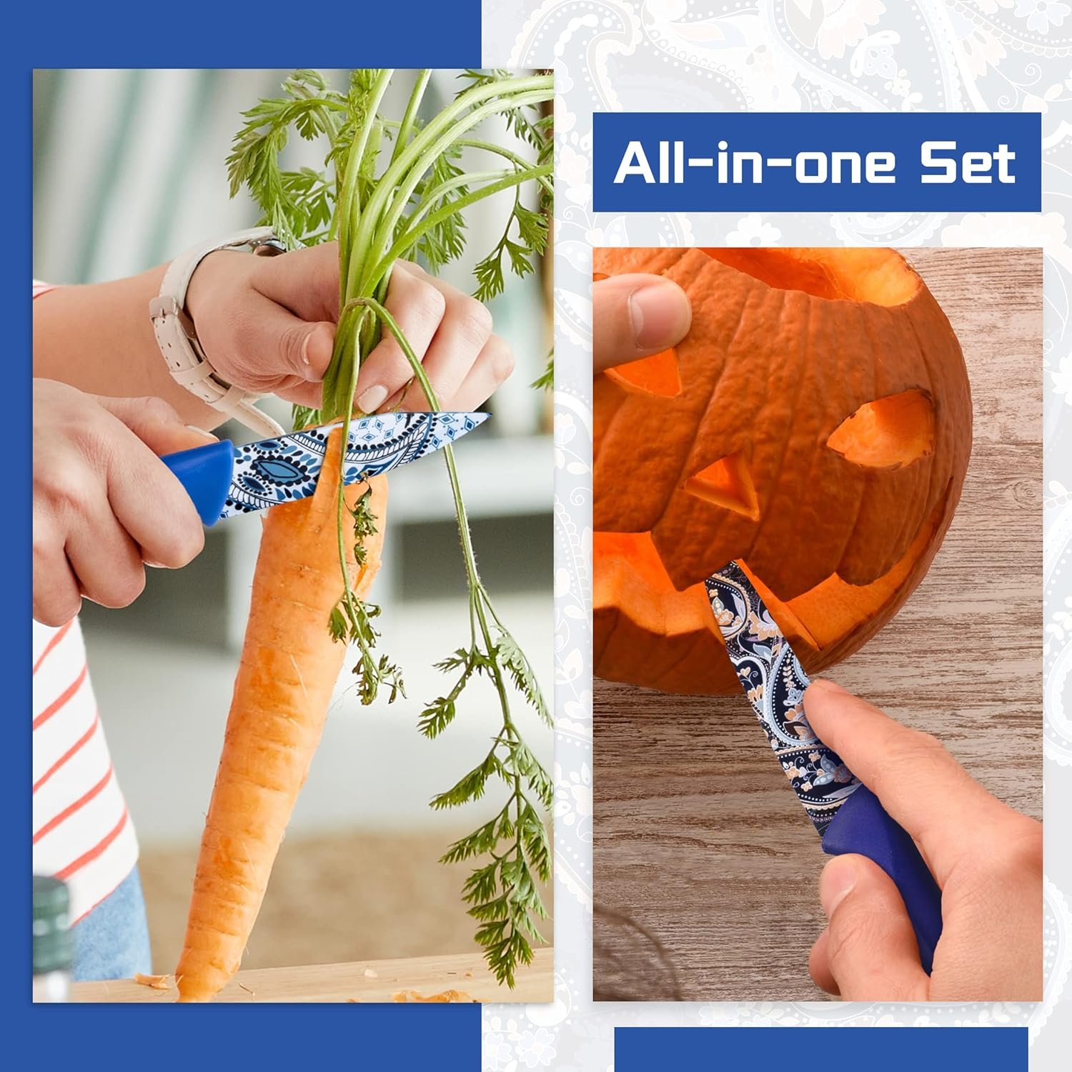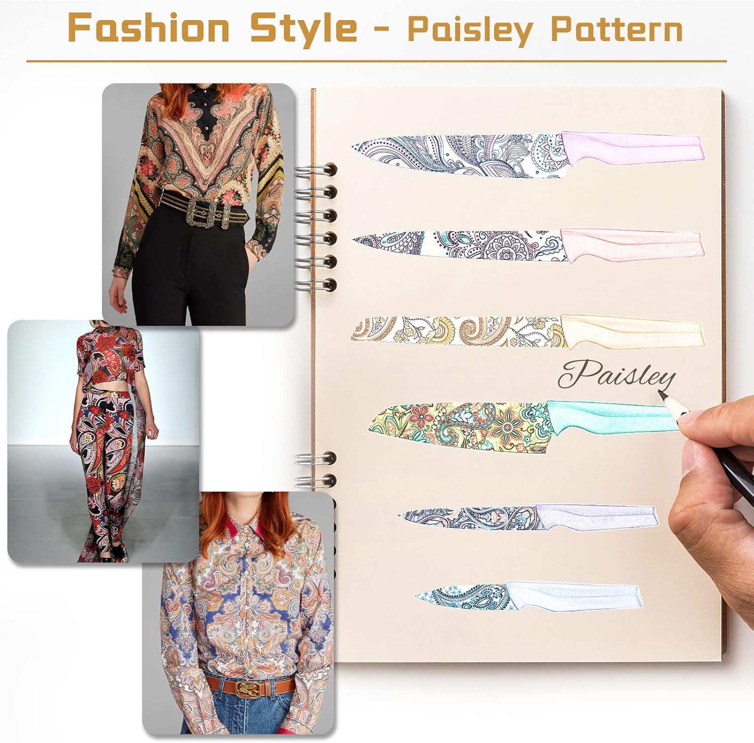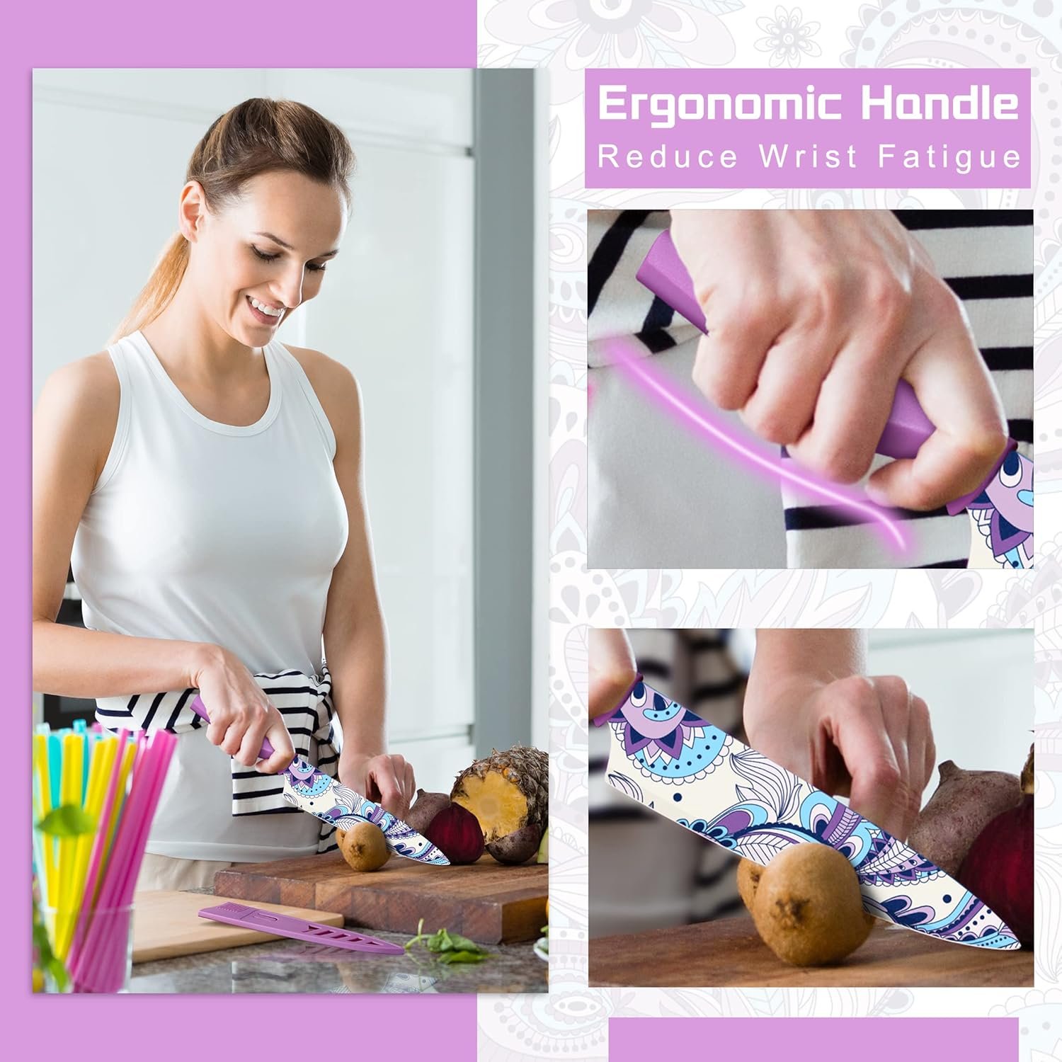 Customers love the knife set’s colorful paisley pattern and appreciate its sharpness, with one noting it cuts through meat like butter. The knives are well-made, durable, and functional for daily use, while also offering good value for money. They like the blade covers for safety, and one customer mentions they slice through anything with less effort.