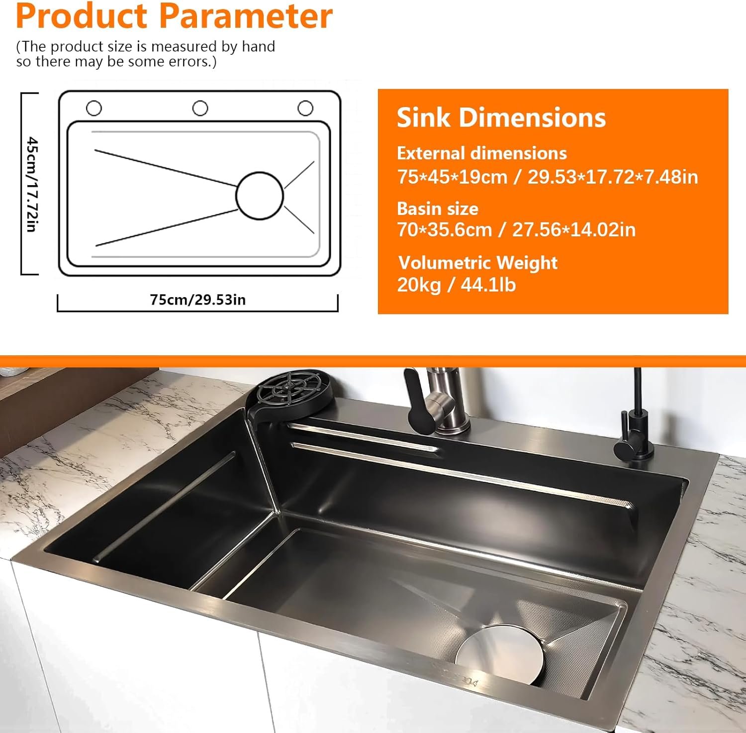 Extra-Large Capacity: With dimensions of 29.53×17.72 inches, our sink offers a generous bowl size that can accommodate large pots and pans, making it perfect for busy families and gourmet chefs alike. The extra space allows for more efficient washing and prepping, reducing the time you spend at the sink.