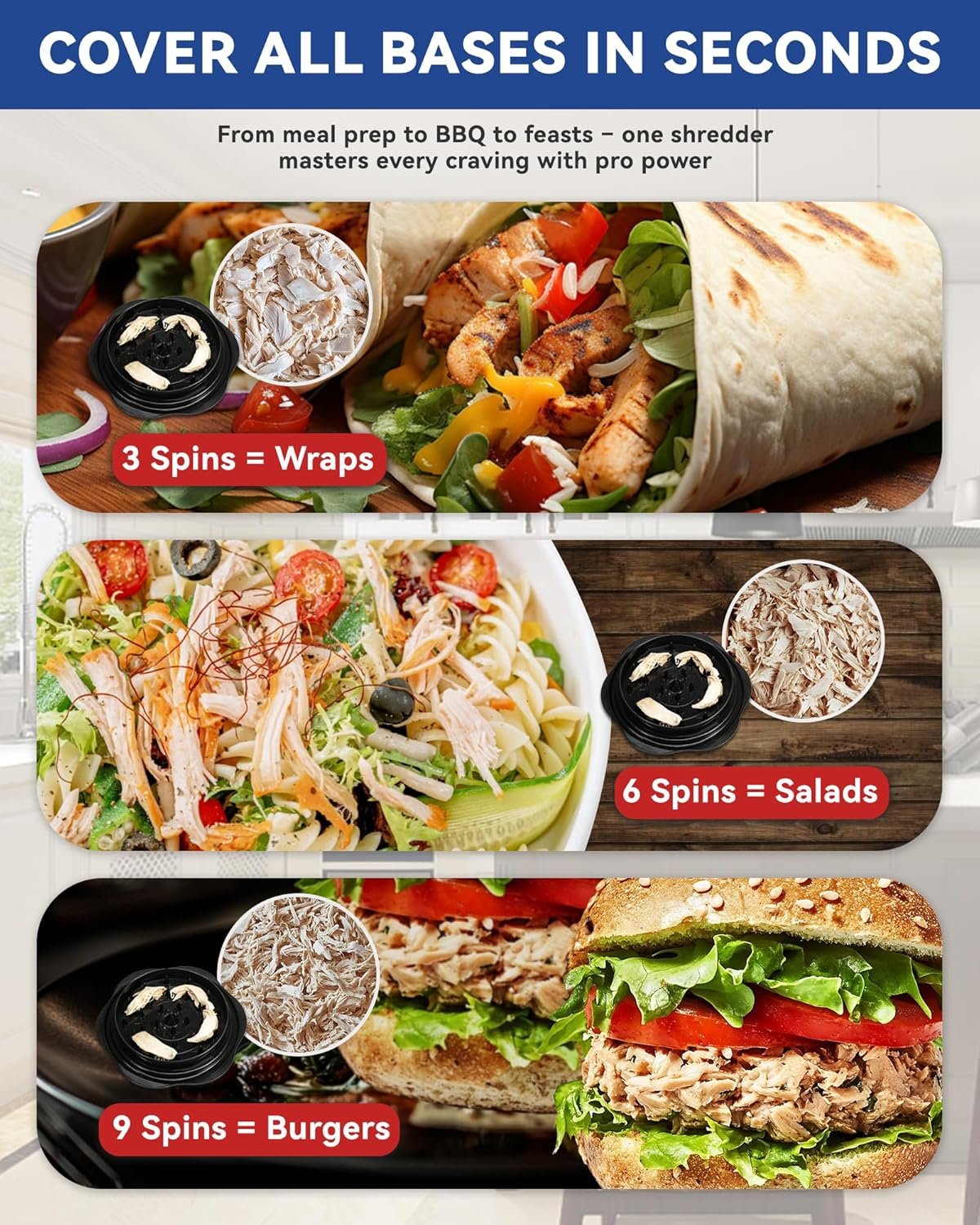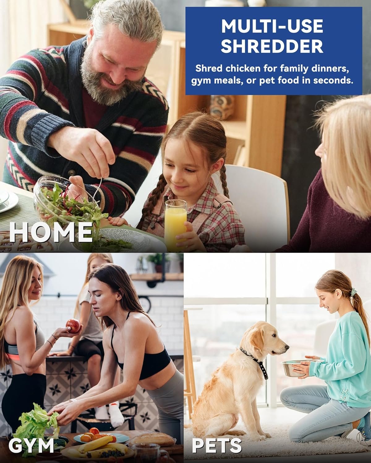【Great Kitchen Helper】Perfect for fitness enthusiasts, barbecue lovers or those who love to cook, this meat grinder effectively shreds chicken, pork, beef and other vegetables, widely used for tacos, quesadillas and BBQ pork, tuna salad, buffalo chicken salad, casserole dishes. In addition, pet lovers can use this meat slicer to shred chicken for pet food. It makes an ideal gift for family and friends on any special day.