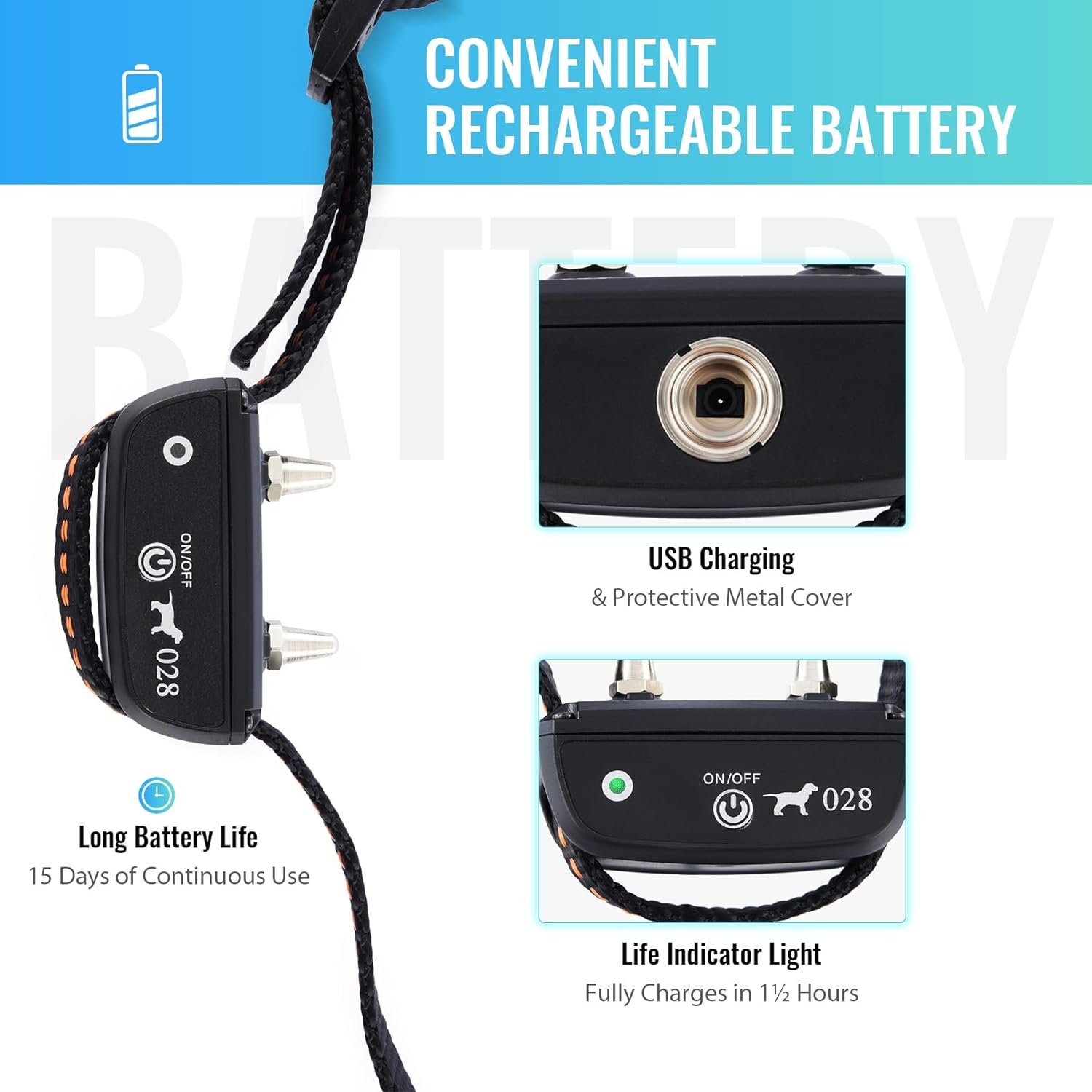 DEPENDABLE SERVICE: The wireless barrier transmitter is powered by 3 AA batteries (not included) but the electronic pet collar works as long as 5 days before being easily recharged from any available USB port or charging station