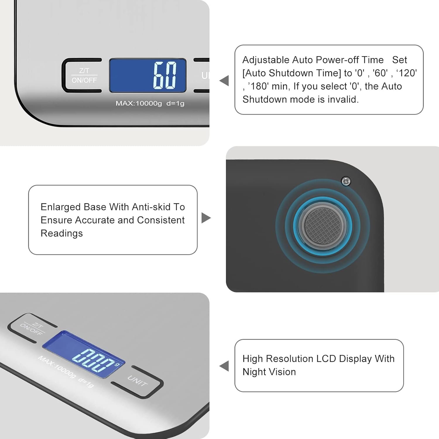 Accurate Measurement:The small postal scale can weigh up to 10kg/22lb.It uses 4 high-precision weight sensors,accurate to 1 gram.It offers multiple units of measure(g/kg/lb/oz/ml/milk ml).