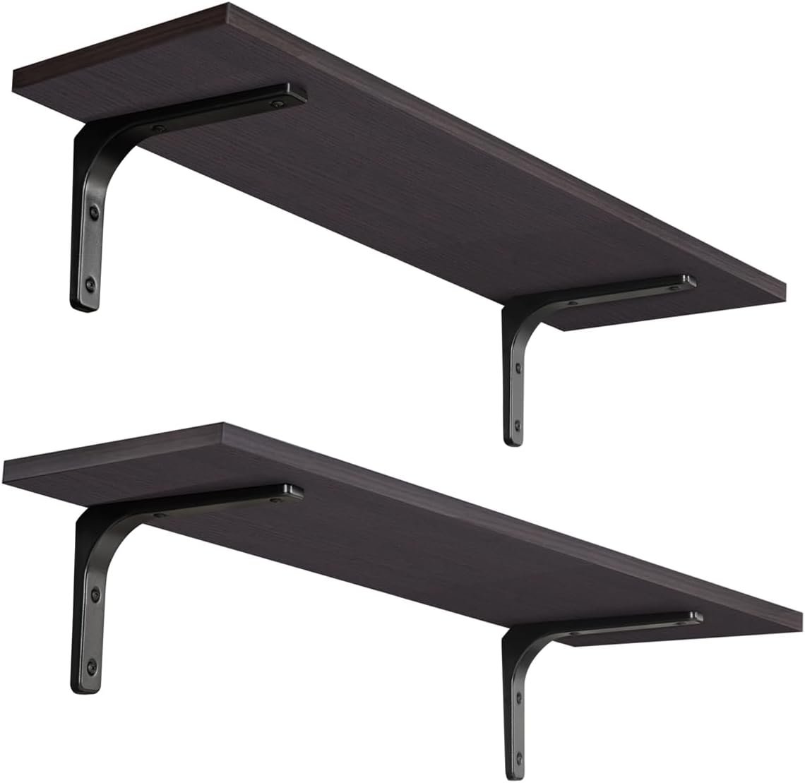 Customers find the wall shelves well-made and easy to install with excellent instructions, appreciating their modern-rustic look and good size that works well in tiny homes. The shelves serve their purpose effectively. While some customers consider them a great value for the price, others describe them as a waste of money. The brackets receive mixed feedback – one customer notes they’re self-drilling, while another mentions they cause the shelves to lean forward.