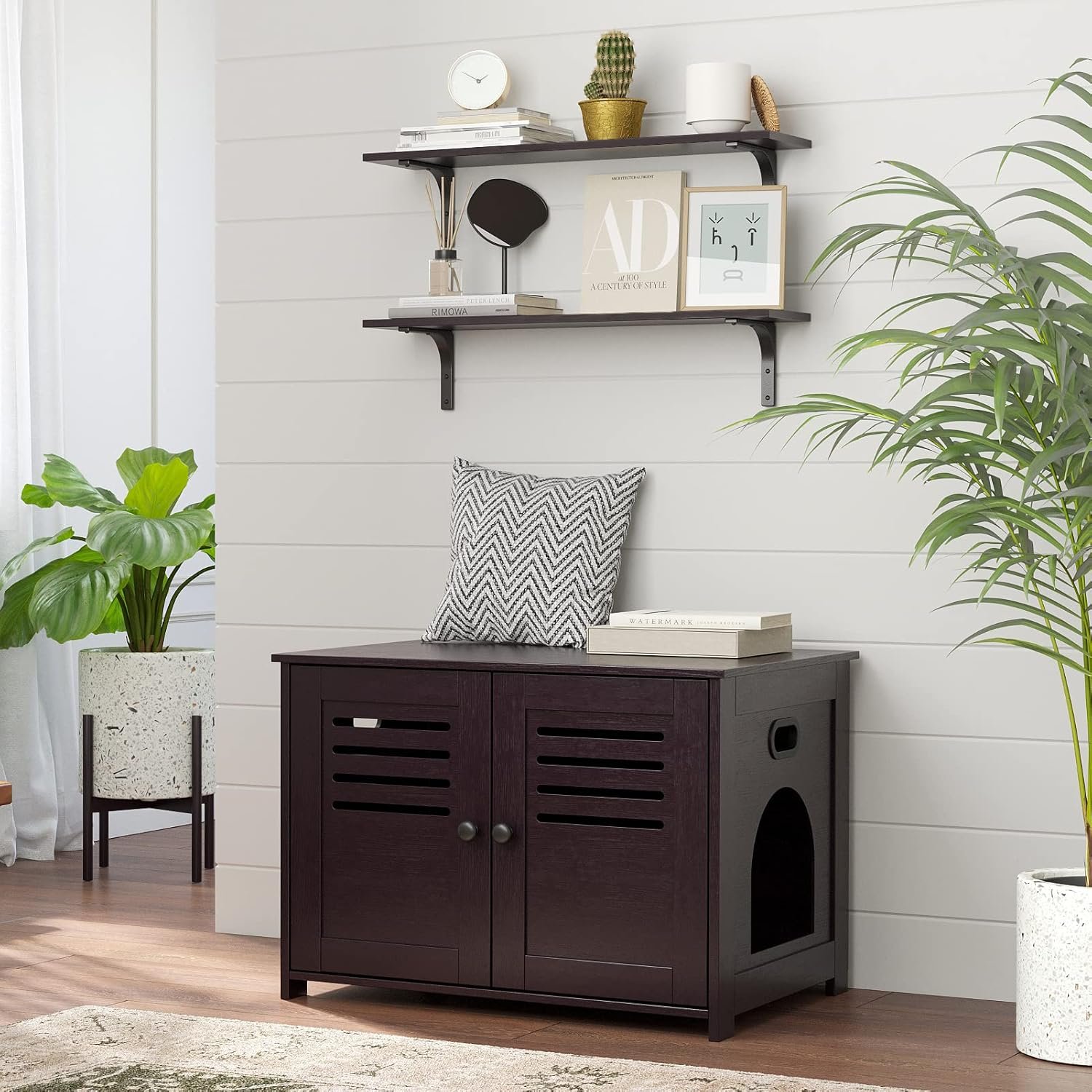 【Sturdy & Durable】Made of sturdy particleboard and metal brackets for safe and durable uses. The metal support shelves of DINZI LVJ are thicker than others for added stability and stronger load-bearing capacity(up to 22lbs), supporting the wooden shelves without deformation over time. All edges are well-finished for safety and smoothness