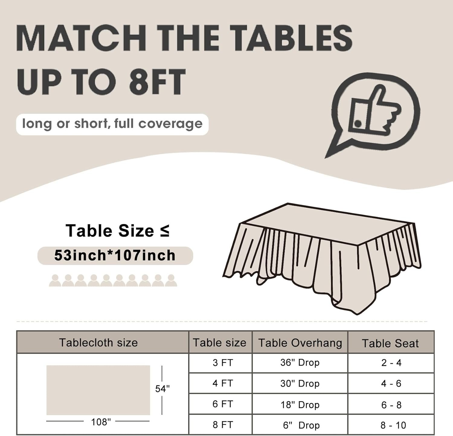 Unlike your typical paper table clothes these disposable table covers will cover any table up to 8 feet. It is great for Dining table, Party, Wedding, Barbecue, Outdoor activities, Christmas, Halloween, Family Outings