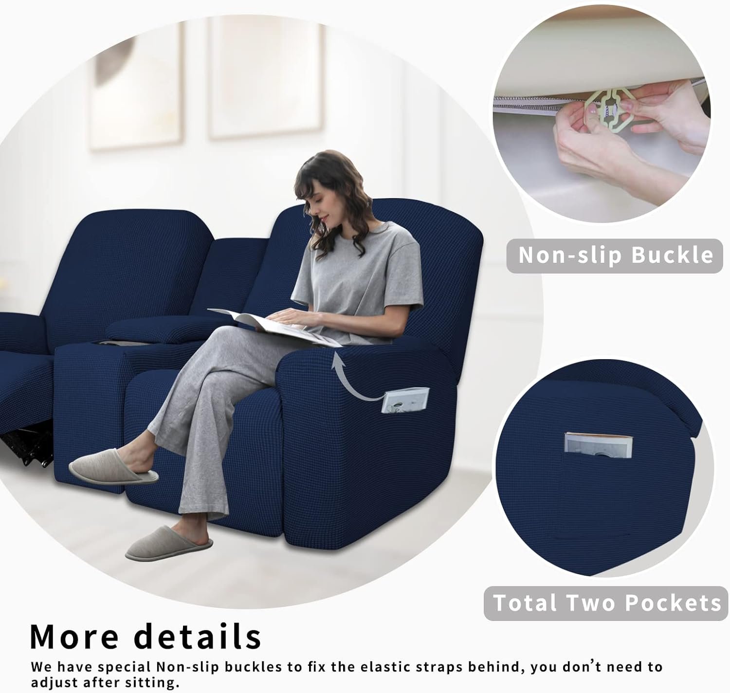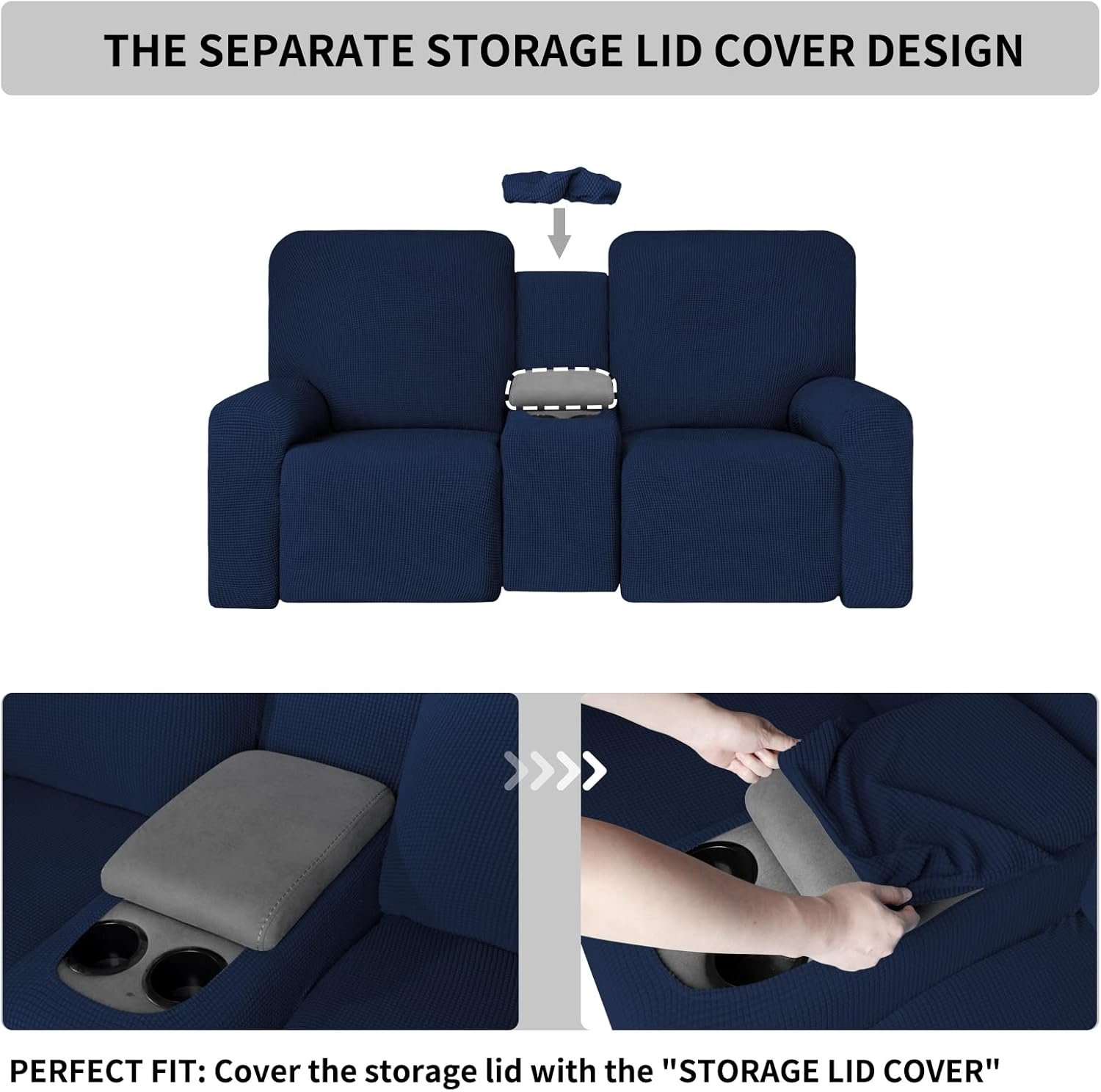 HIGH QUALITY FABRIC: WE HAVE A PATENT FOR THIS PRODUCT. 85% polyester +15% spandex fabric makes our recliner covers more stretchy and soft. Center console cover design does not affect storage usage. Having such a recliner cover can protect your recliner from spills and stains, give your recliner a new look.