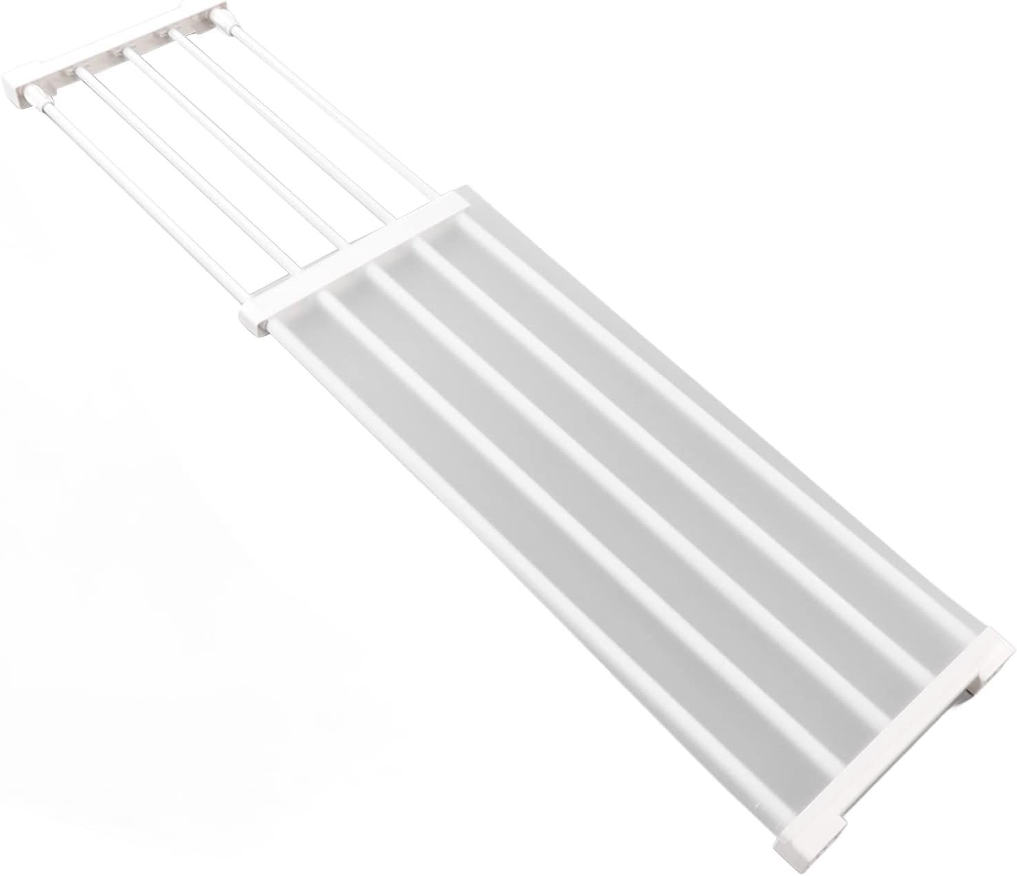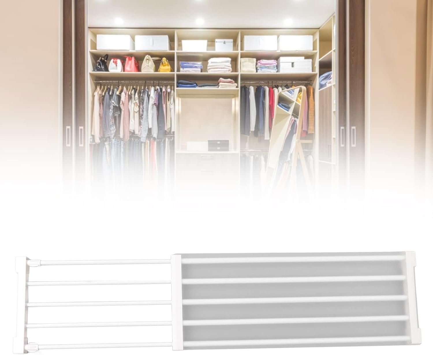 Flexible Placement: The tension rod adjusts from 24 cm to fit most wardrobes, cabinets, or gaps between walls. No tools are needed—simply twist to secure between surfaces. Ideal for renters or temporary setups, it accommodates uneven spaces while keeping items visible and within reach