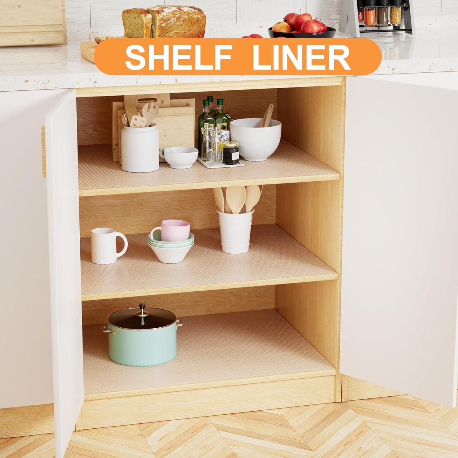 EVA Liner: Kitchen cabinet liner is made of No BPA and odorless materials, which can be reused and also directly contact fruits and vegetables