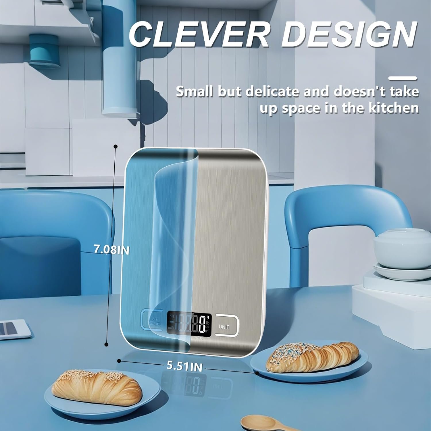 [SATISFY GOURMET LIFE]–Kitchen scale is very simple to use. First, tear off the blue protective film on the surface, install the included 2 AAA batteries and select the ON button on the flat surface to turn on the power; secondly, click the UNIT button to select your unit; then, press the Z/T one-button tare function , reset the weight to zero; finally, put the items into the container, allowing you to easily get the net weight. The simple operation brings you a pleasant baking experience.