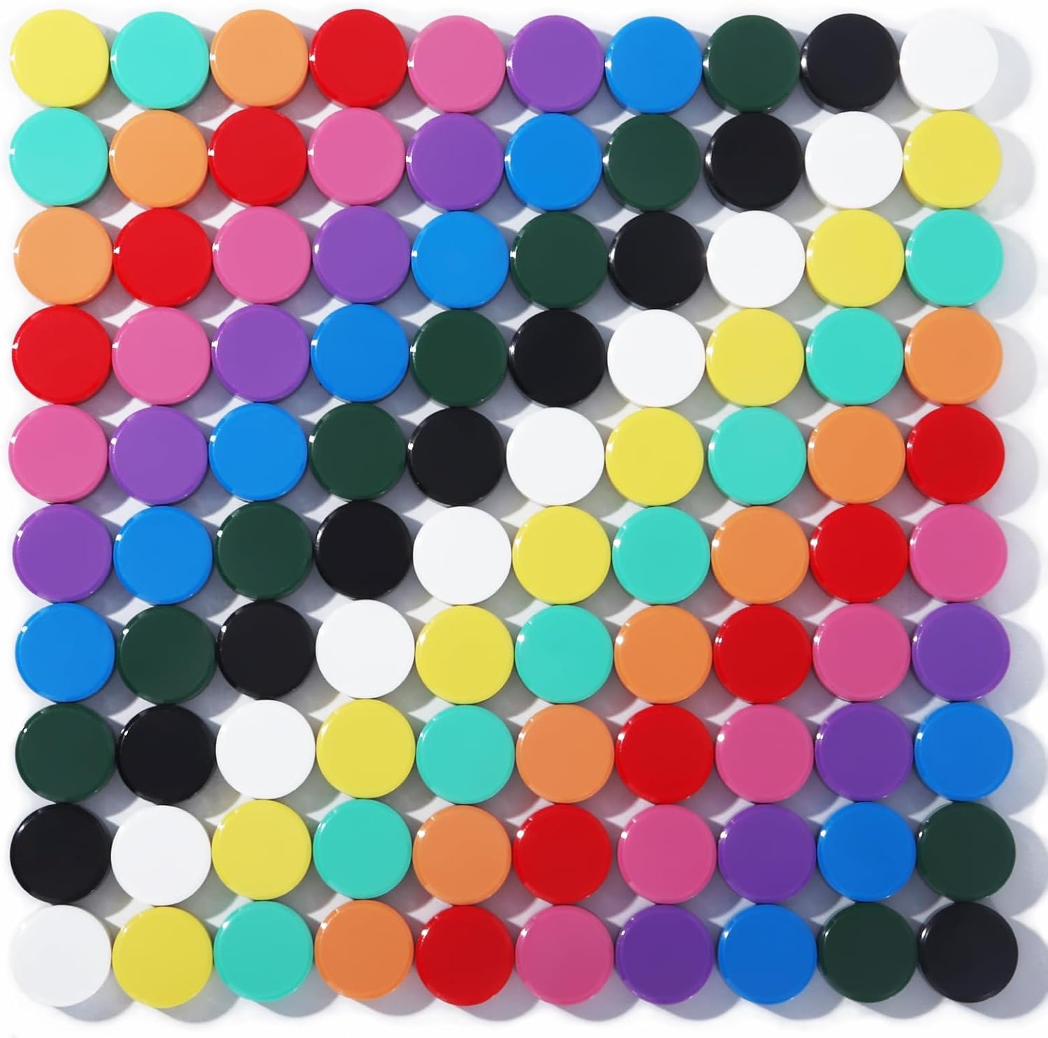 【Specification for the mini magnets】Each pack includes 100 cute magnets; The strong magnet are round in shape; Each fridge magnet has a diameter of 2 centimeters; Thickness: The thickness of tiny magnets is 8 millimeters. These magnets are compact yet provide a strong hold. Age Recommendation: Suitable for use by adults aged 18 and above; Usage Warning: Not suitable for use on glass boards or glass magnetic boards