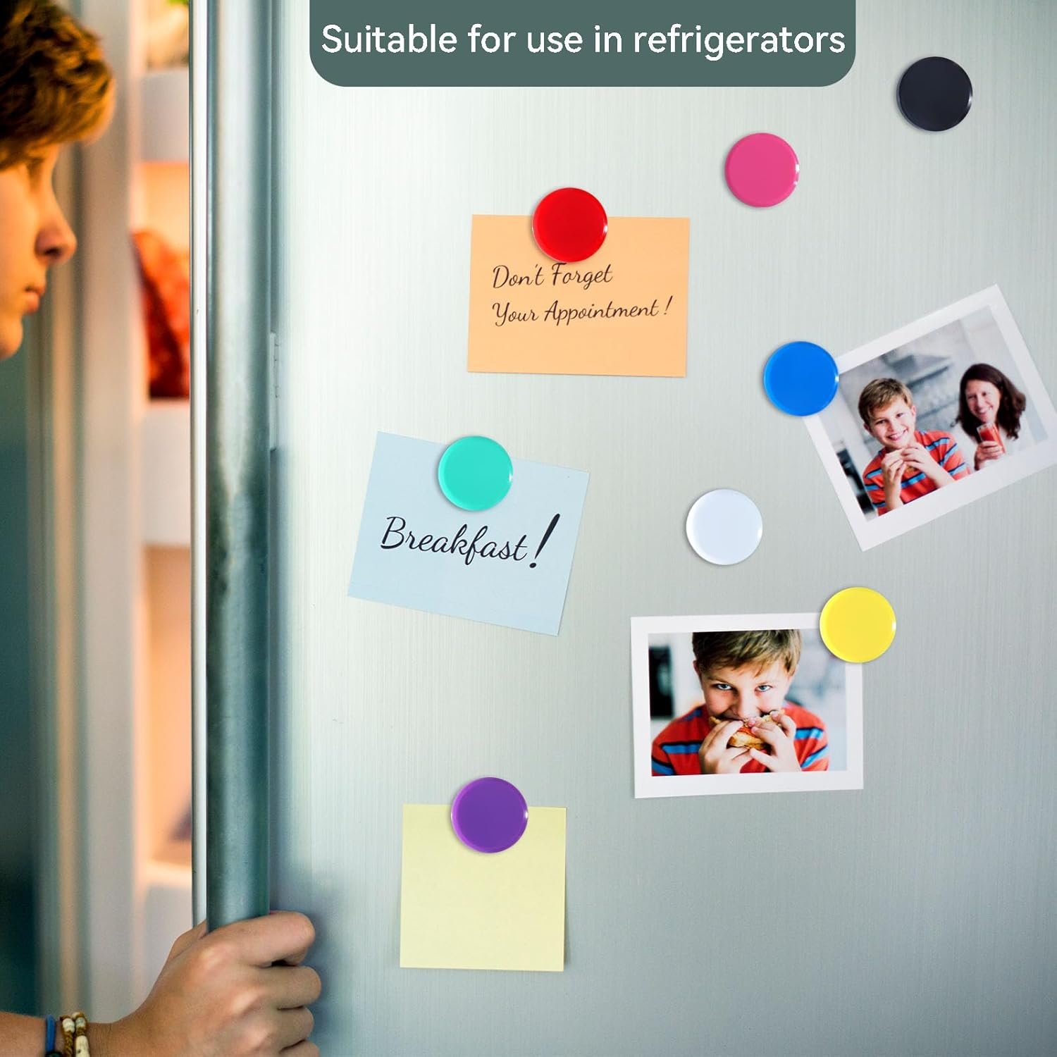 【Multifunction】Use super strong magnet to hold shopping lists, to-do lists, or reminders, keeping important notes visible and easily accessible in the kitchen. Craft magnets can attach photos of family, friends, or favorite memories to your fridge, turning it into a personalized photo frame that can be enjoyed daily.These cute fridge magnets can serve as a makeshift message board for communicating with family members about schedules, appointments, or just to leave encouraging notes