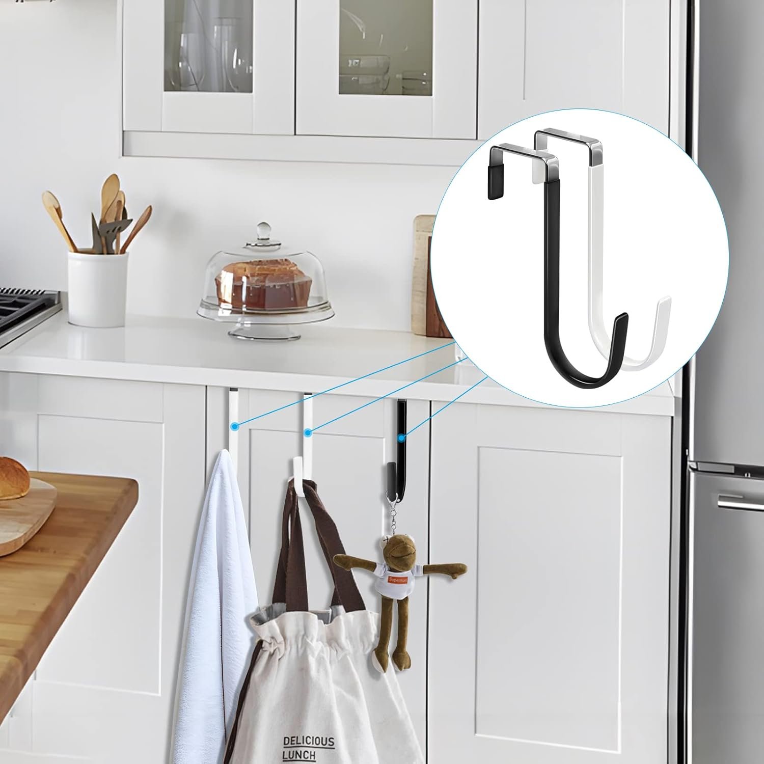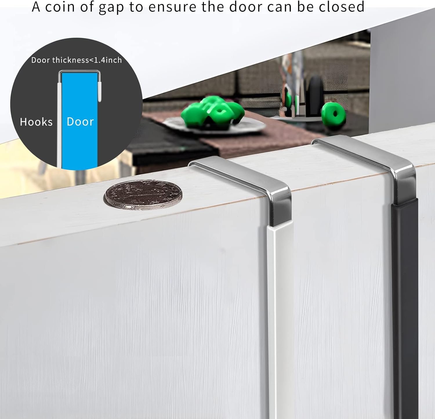 Wide Application: The over the door hooks can be applied to most door in your house, fit doors of living room, bathroom, shower room, bedroom, kitchen or closets. Prefect for hanging clothes, towels, hats, coats, bags, etc. The hooks convert your doors into a convenient storage space and keep your room organized without messy