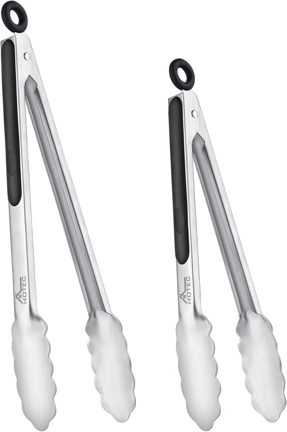 HOTEC Stainless Steel Kitchen Tongs Set of 2 – 9″ and 12″