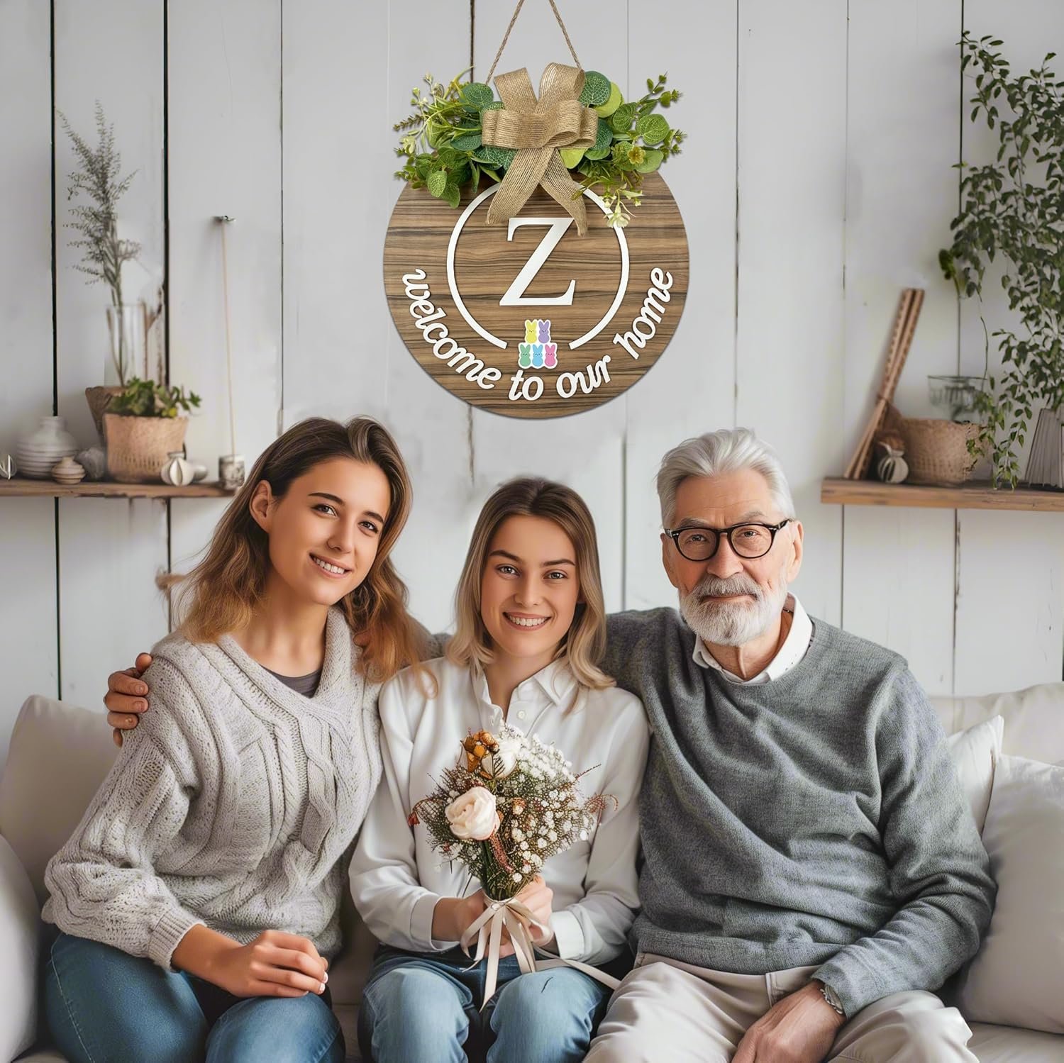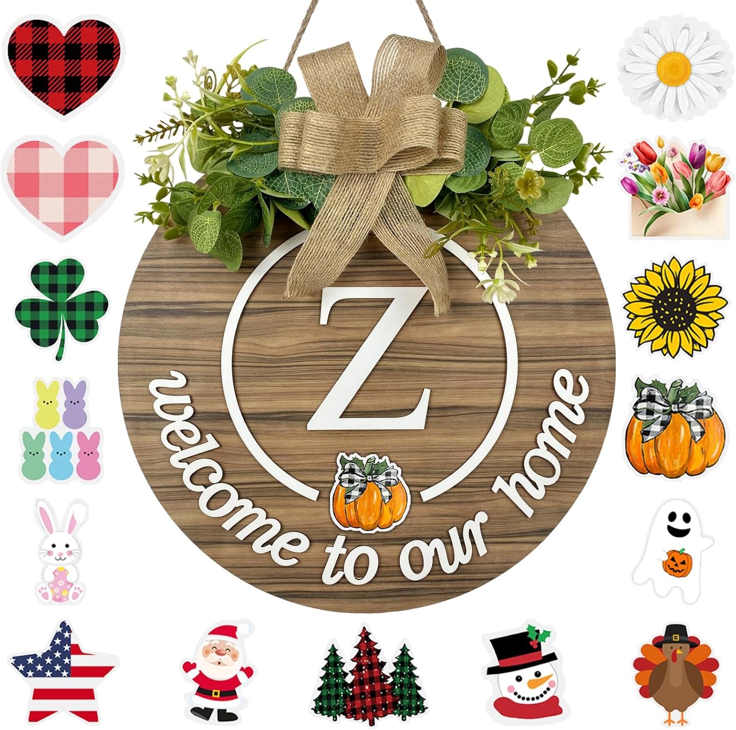 Exquisite Gifts: Interchangeable welcome sign with door wreaths for front door outside all season, perfect decoration for every season or holiday. The perfect gift for any family home decor, choose the corresponding family last name initials for family or friends, or as a housewarming gift new home for a new homeowner, is also very suitable, for the new homeowner, they will love this beautiful housewarming gift. Welcome to our home door sign. Fill your house warming new home