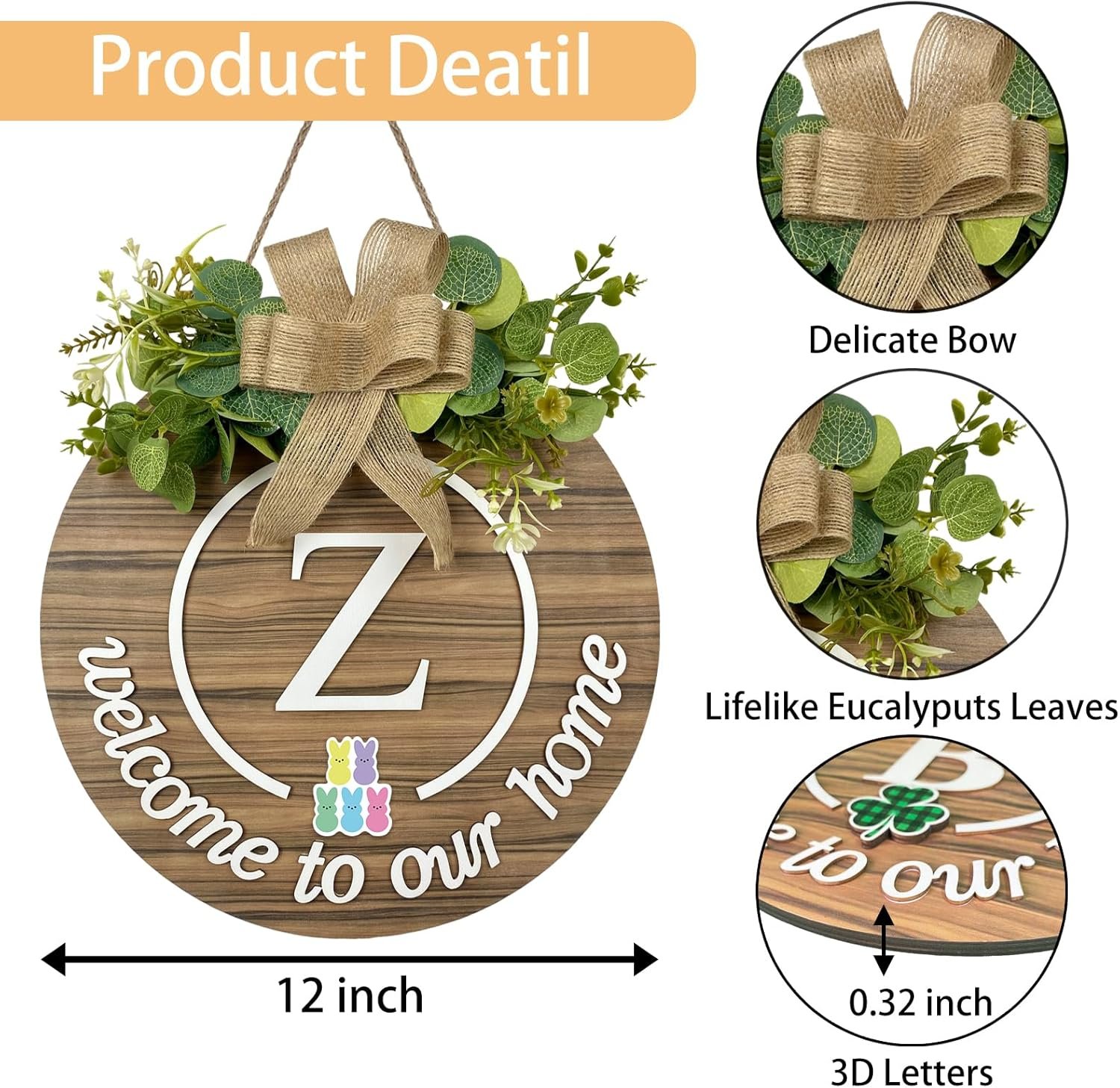 High-quality material: The interchangeable welcome sign is made of high-quality wood material, with exquisite wood texture, thicker, stronger, and more textured. Use high-quality hot melt adhesive to paste the artificial eucalyptus wreath and 3D raised letters on the board to make it vibrant has a three-dimensional feeling, and the charming appearance attracts people’s attention, bringing you a good use experience, which can provide you with long-term service