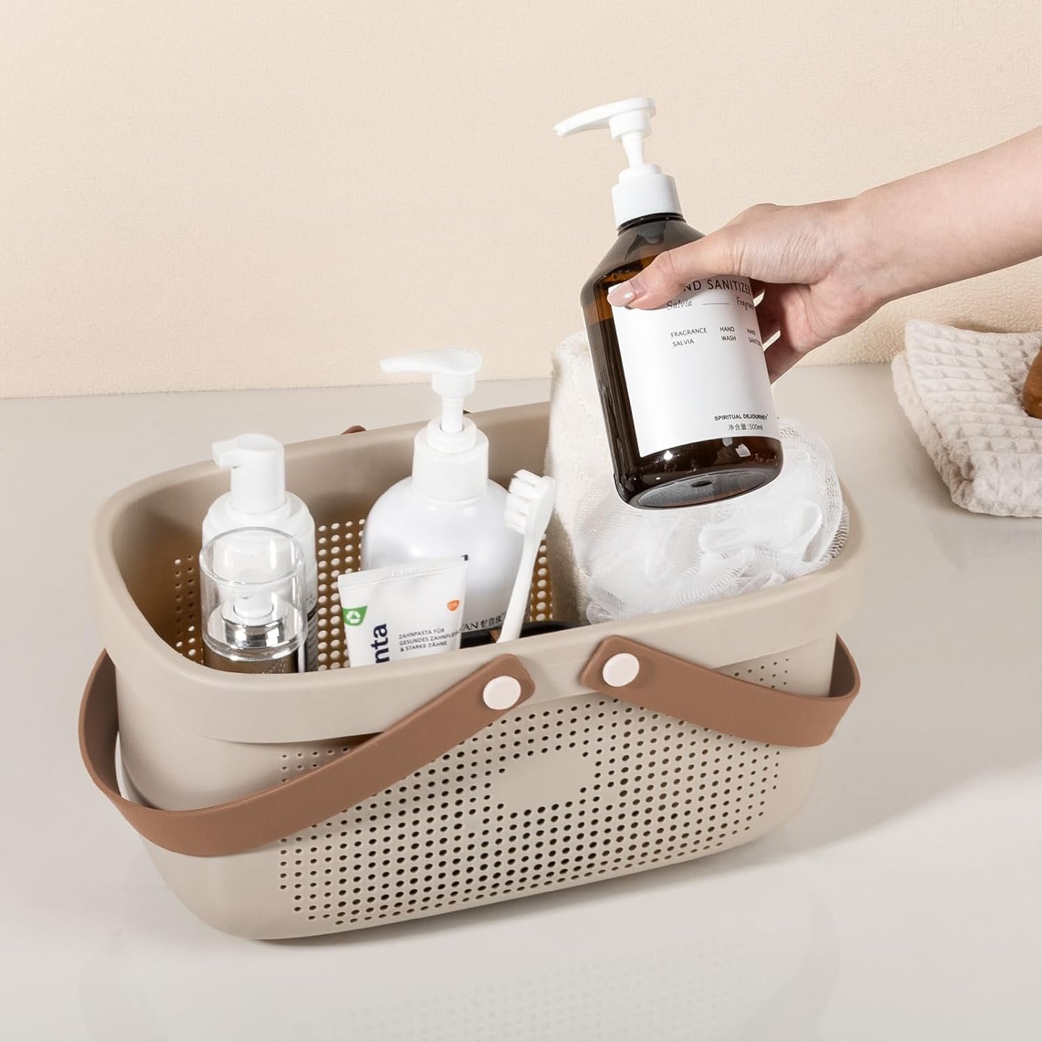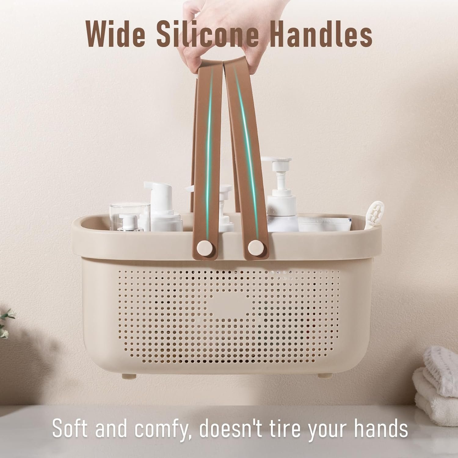 Sturdy: Made of sturdy PP material, strong and not easy to damage; the heightened design at the bottom of the shower tote is non-slip and wear-resistant, stable.