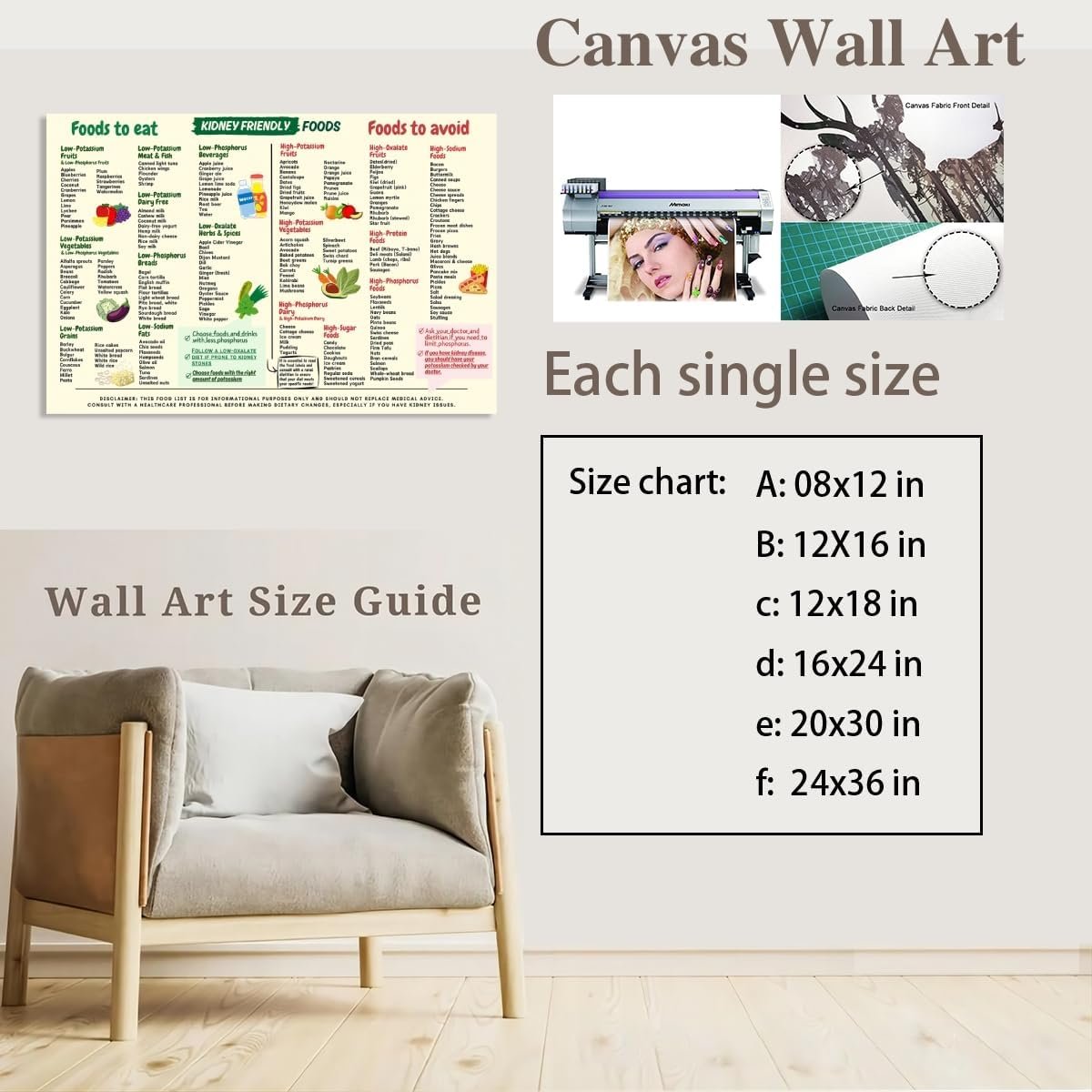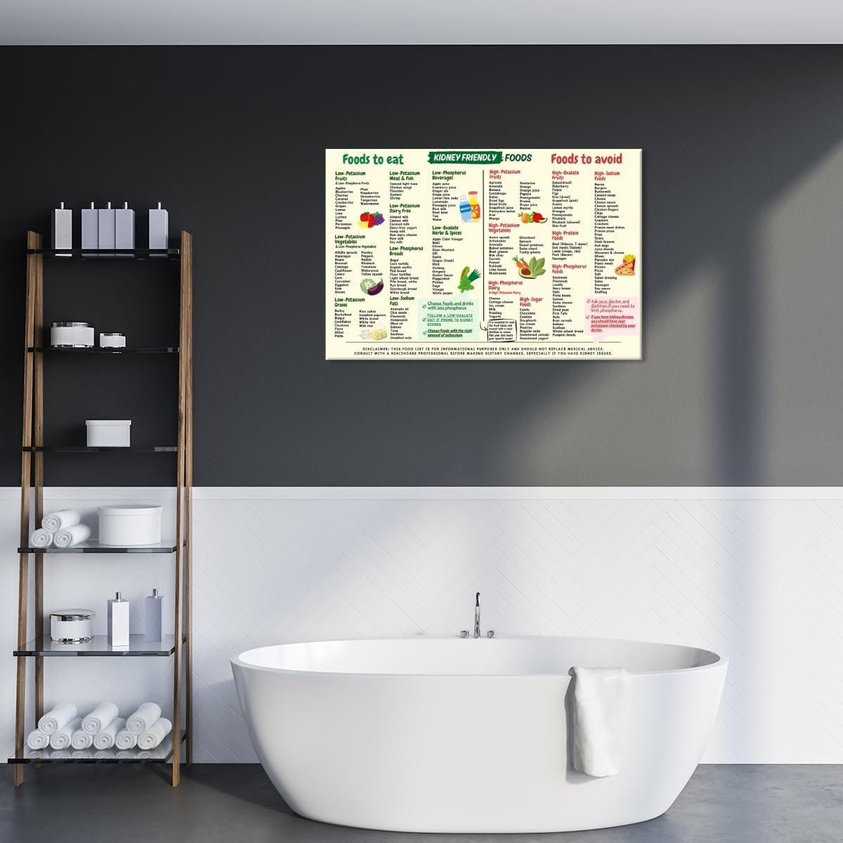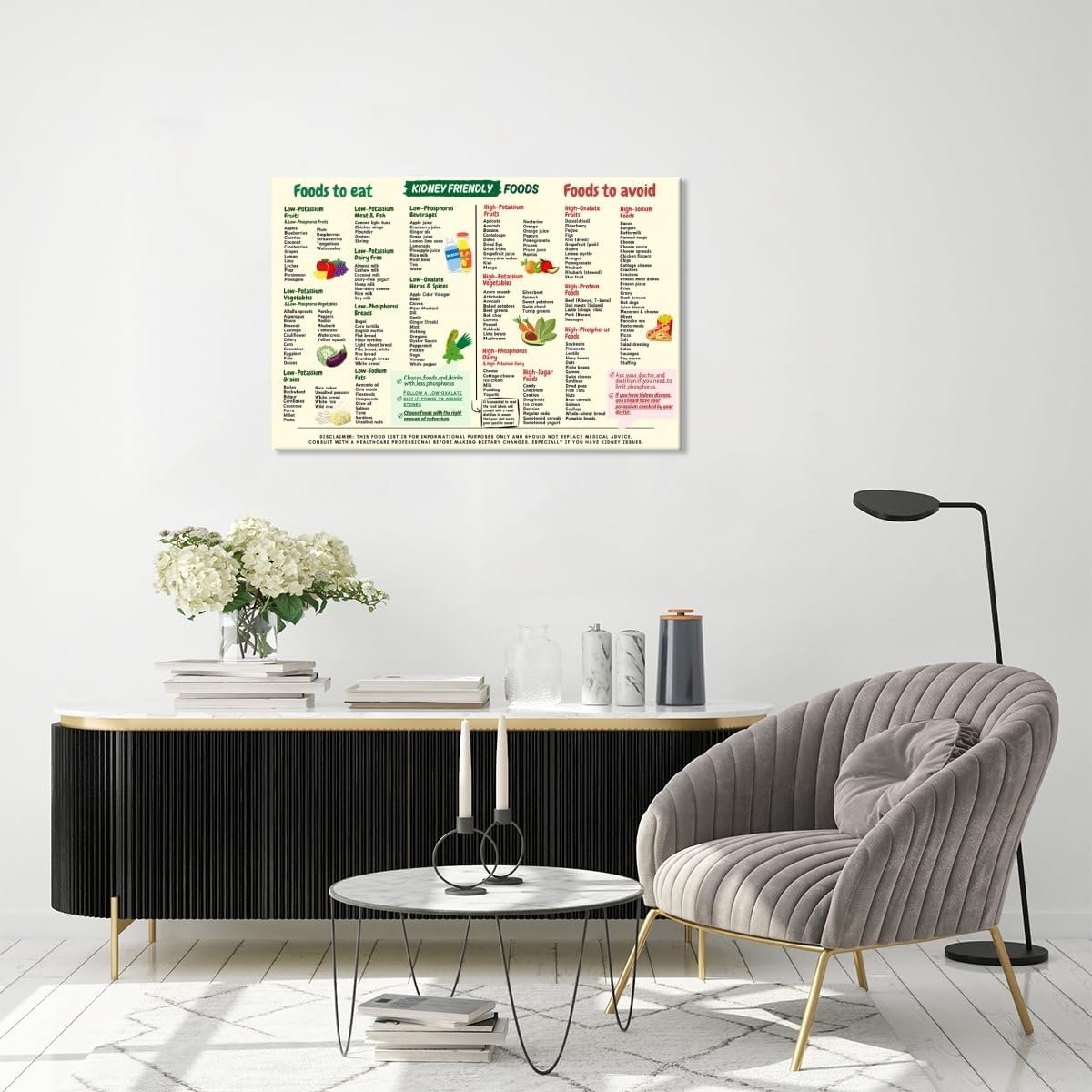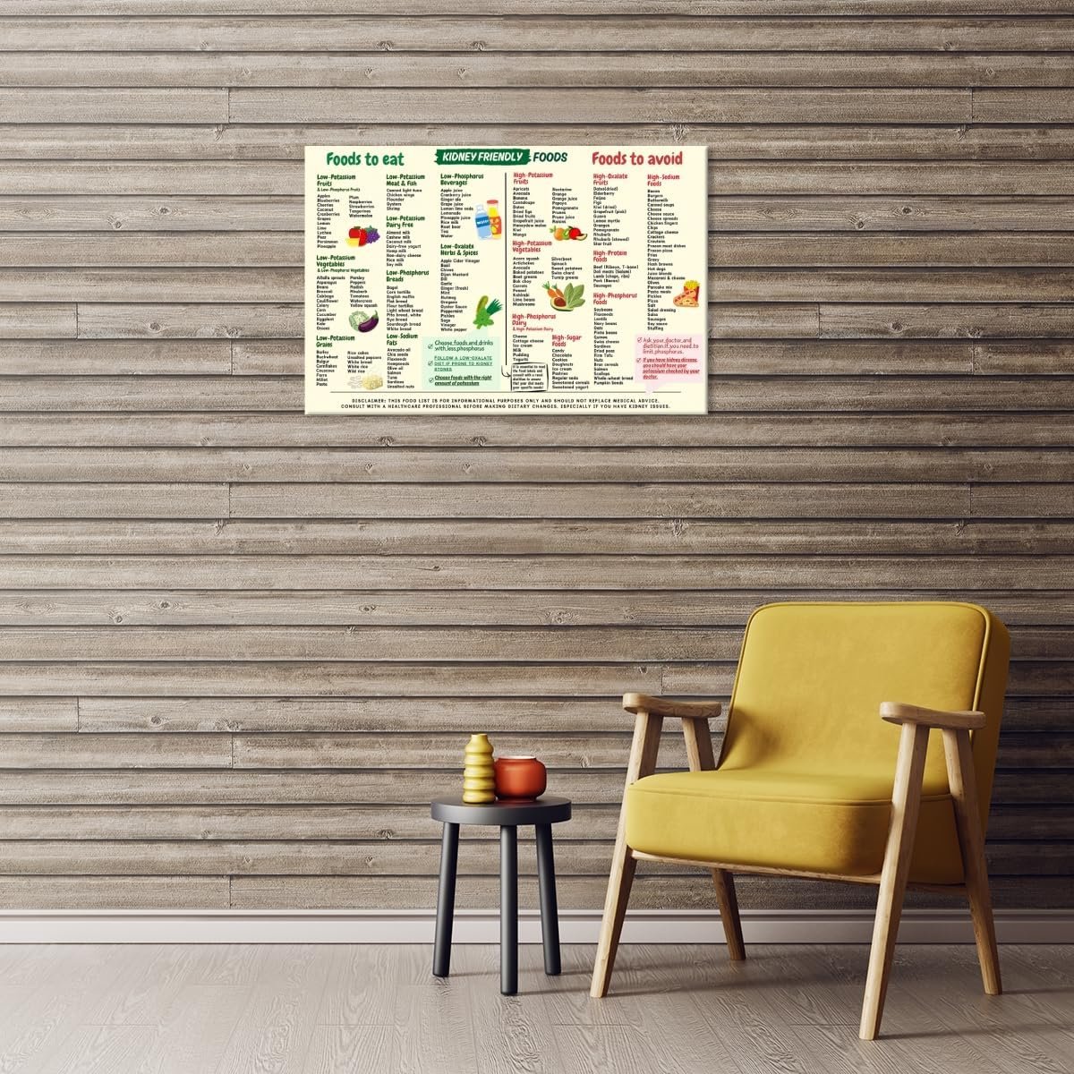 2. Kidney Diet Food List: Durable canvas print features a clear kidney diet food chart that won’t fade. Ideal as educational kitchen decor or doctor’s office wall art for easy grocery shopping list access.