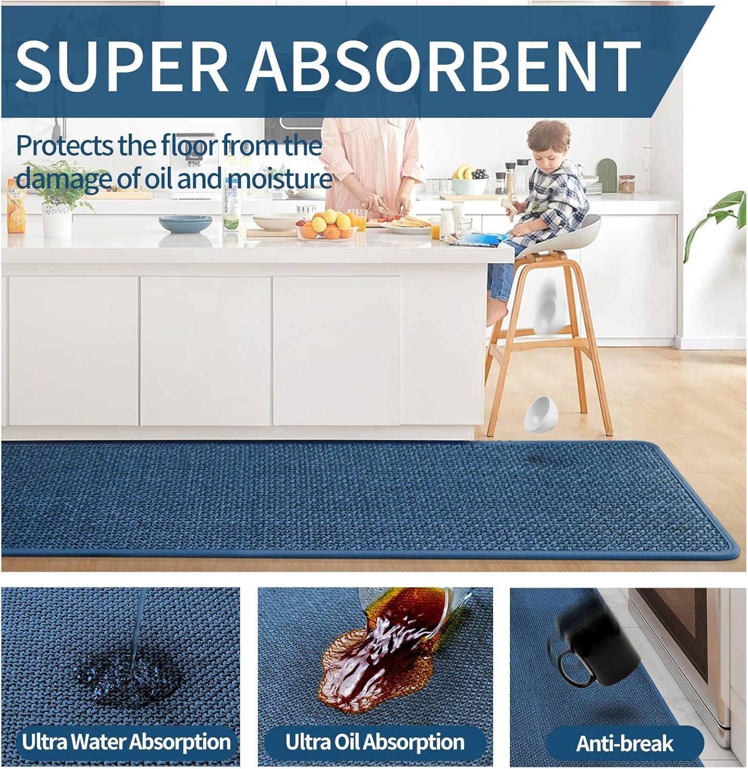 Super Non-slip: The non-slip rubber backing can increase slip resistance, and its grip effect allow you standing firmly on the kitchen mat without slipping. Our kitchen rugs nonslip can provide security for your family. It can be applied on hardwood floors, tiles, linoleum, and other smooth surface without any concern.
