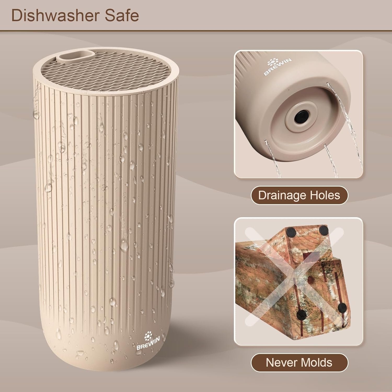 DISHWASHER SAFE – Our aesthetic knife block is made of high density polypropylene, with drainage holes at the bottom. Both knives and block are dishwasher safe.