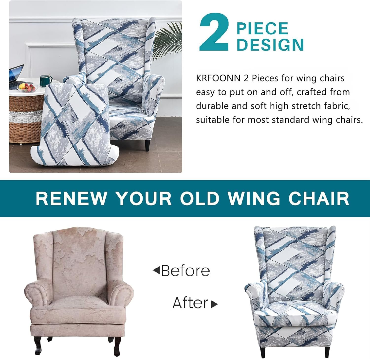 Multiple Choice: KRFOONN sofa cover keep the shine of the wingback chair, color is changeable, have variety of patterns design, transform your old, damaged or ugly wingback chair a new look, change household style at will need not expend huge cost. Increased the use time of your chair.