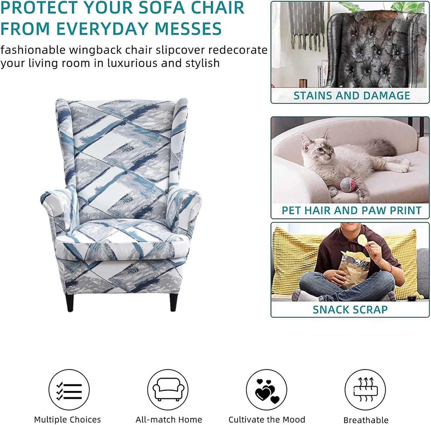 High Quality Wingback Chair Cover: This 2-piece couch cover is made of 92% polyester and 8% spandex. Durable, wrinkle-resistant, anti-pilling, no need to worry about deformation after long-term use. Stretchy and strong enough to fit most types of wingback chair perfectly. Not only protect your sofa chair from stain, wear, scratch and tear, but also bring your old wingback chair a luxurious, brilliant and high-end looking. Ideal for families with children and pets.