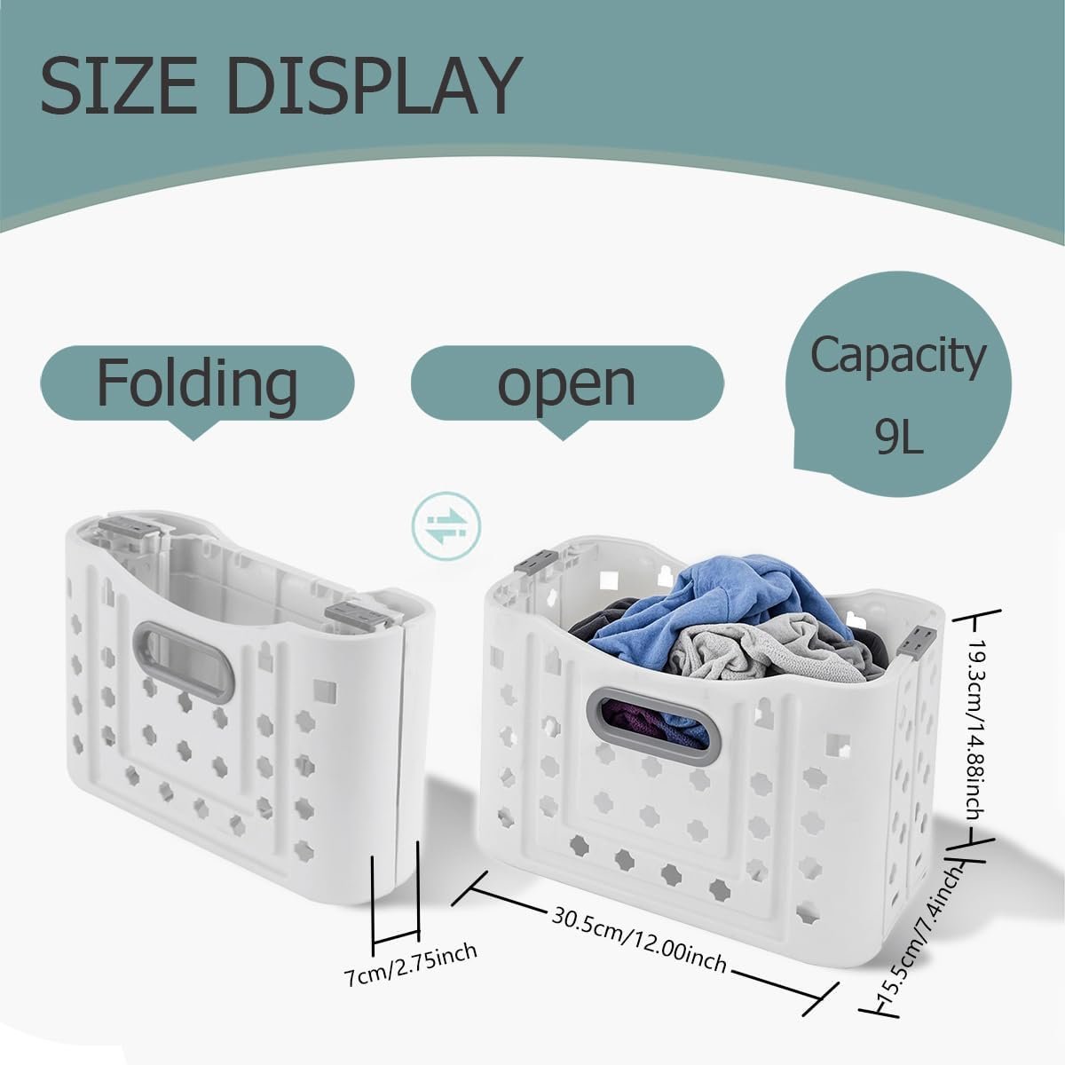 STORAGE CAPACITY The laundry basket has a capacity of 9L, which can hold a large number of supplies,offers ample space for storing various items such as clothes, underwear, pillows, and baby toys.