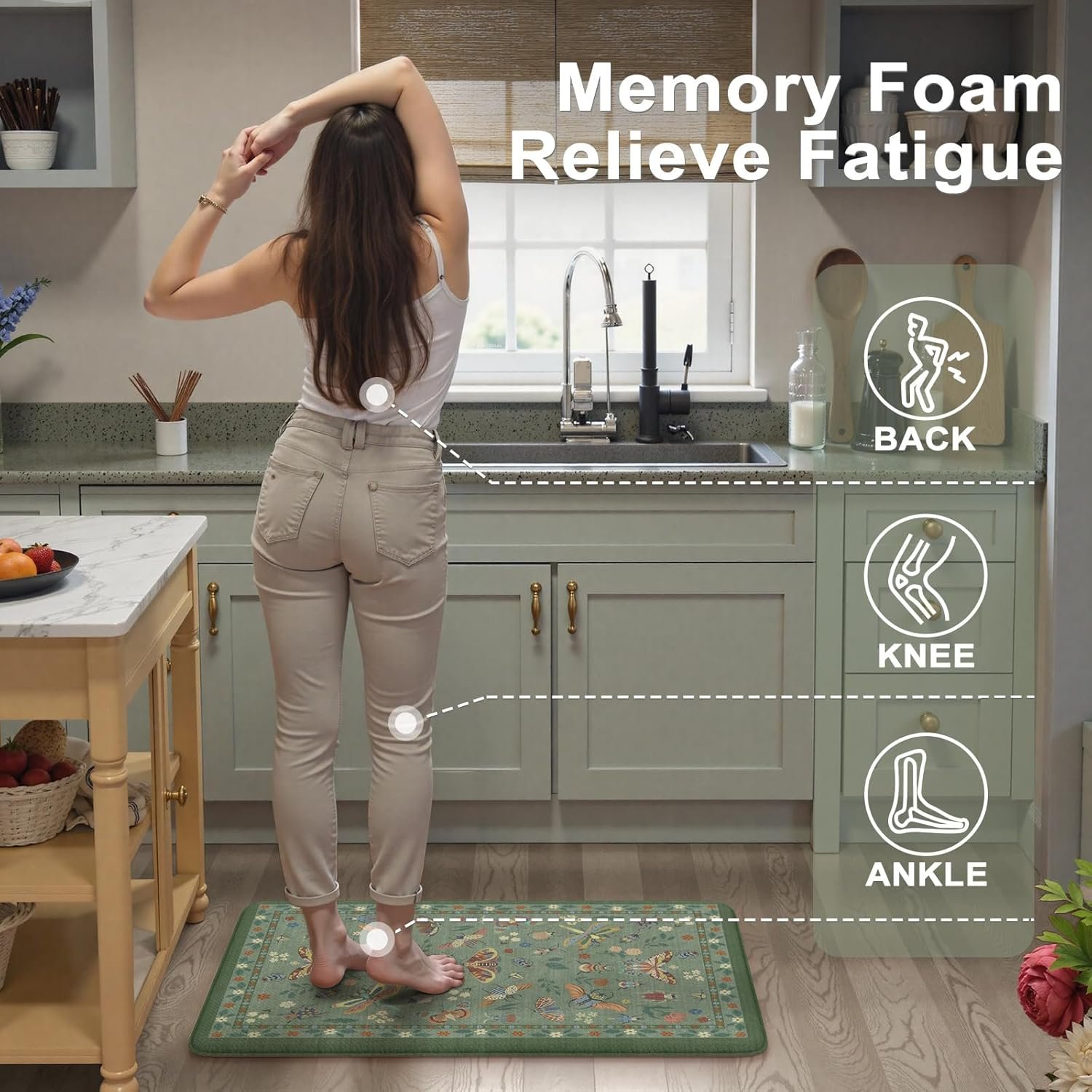 Comfort: The anti-fatigue kitchen floor mat is ergonomically designed and made of high-quality PVC material. The 0.47-inch thickness is both soft and supportive. This comfort kitchen mat can help reduce back pain, relieve standing fatigue, and make you more comfortable when you stand