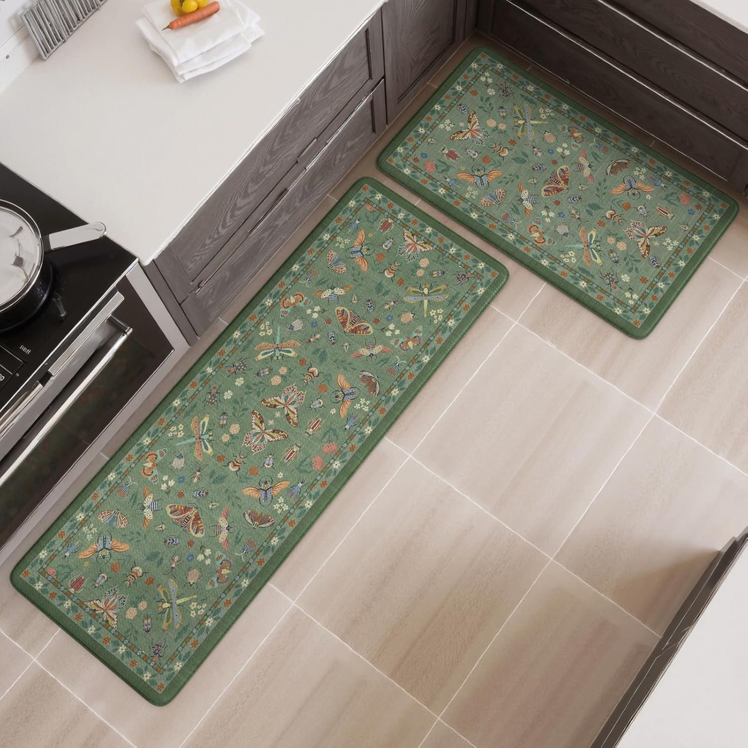 Customers like the design of the kitchen mat, with one mentioning they love the print. However, the color receives negative feedback, with one customer noting that the green background appears darker than expected.