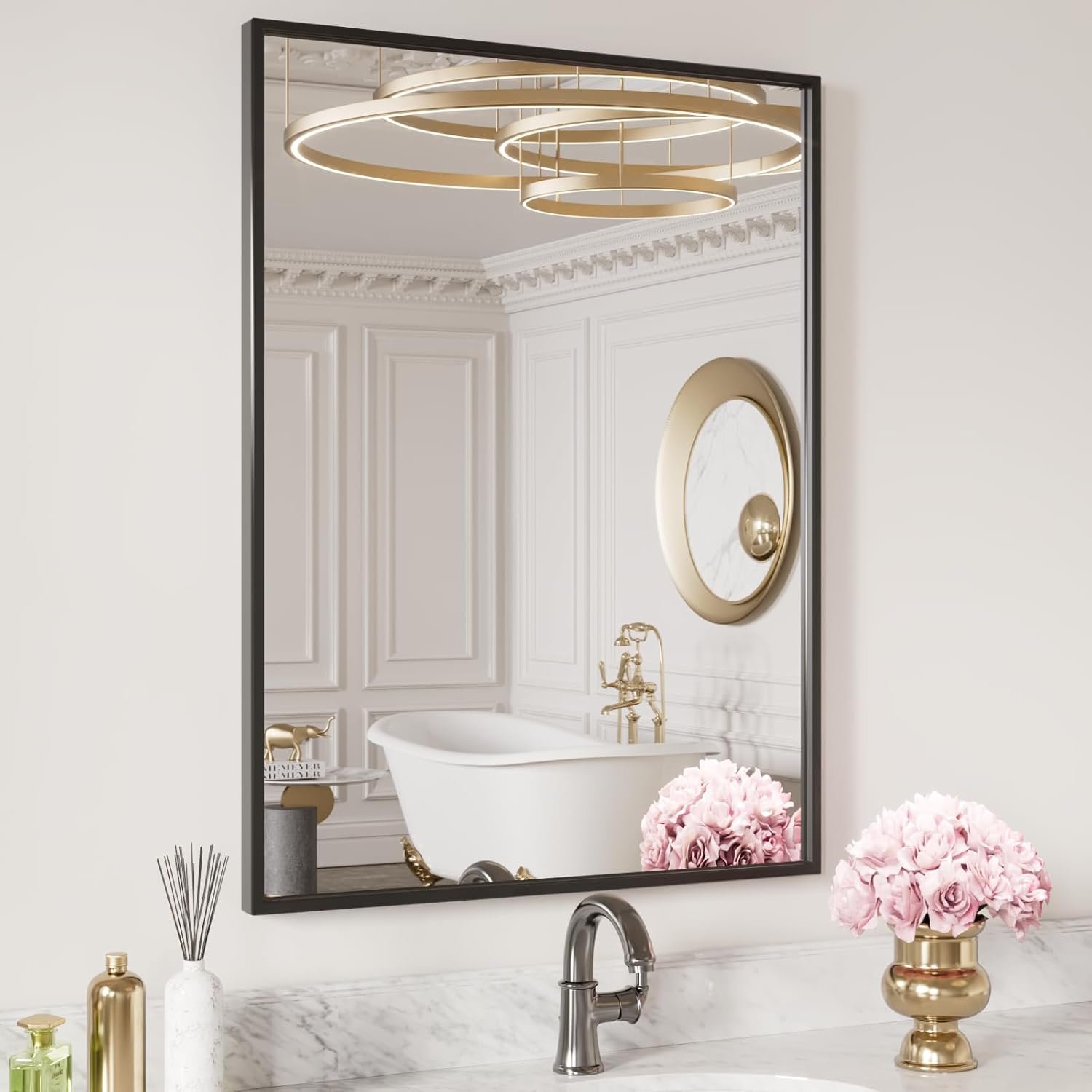【Clear Reflection & NO Distortion】: LOAAO black rectangle mirror is designed with HD float glass to deliver a clear reflection with no distortion. clear lines, simple modern design.