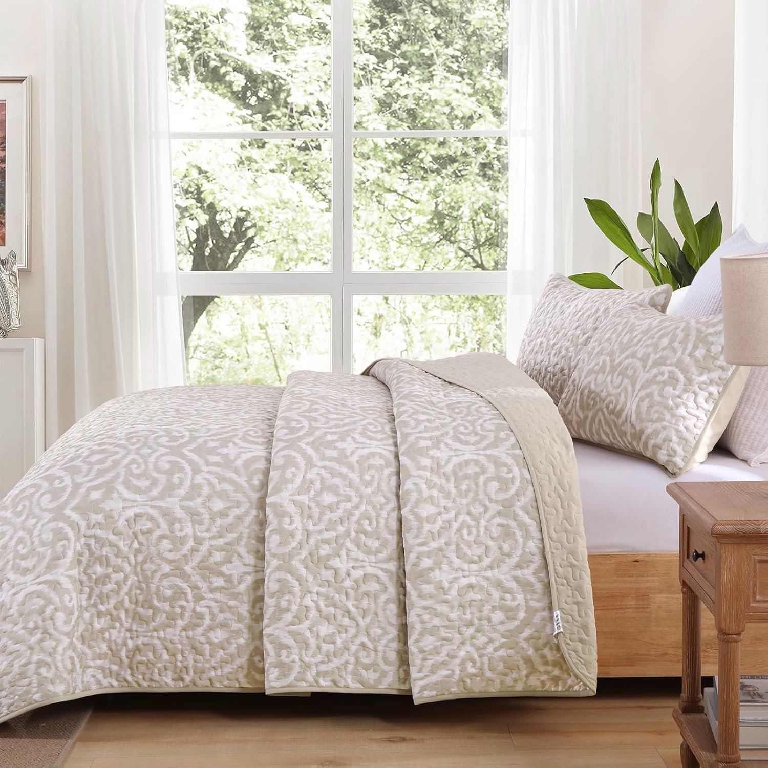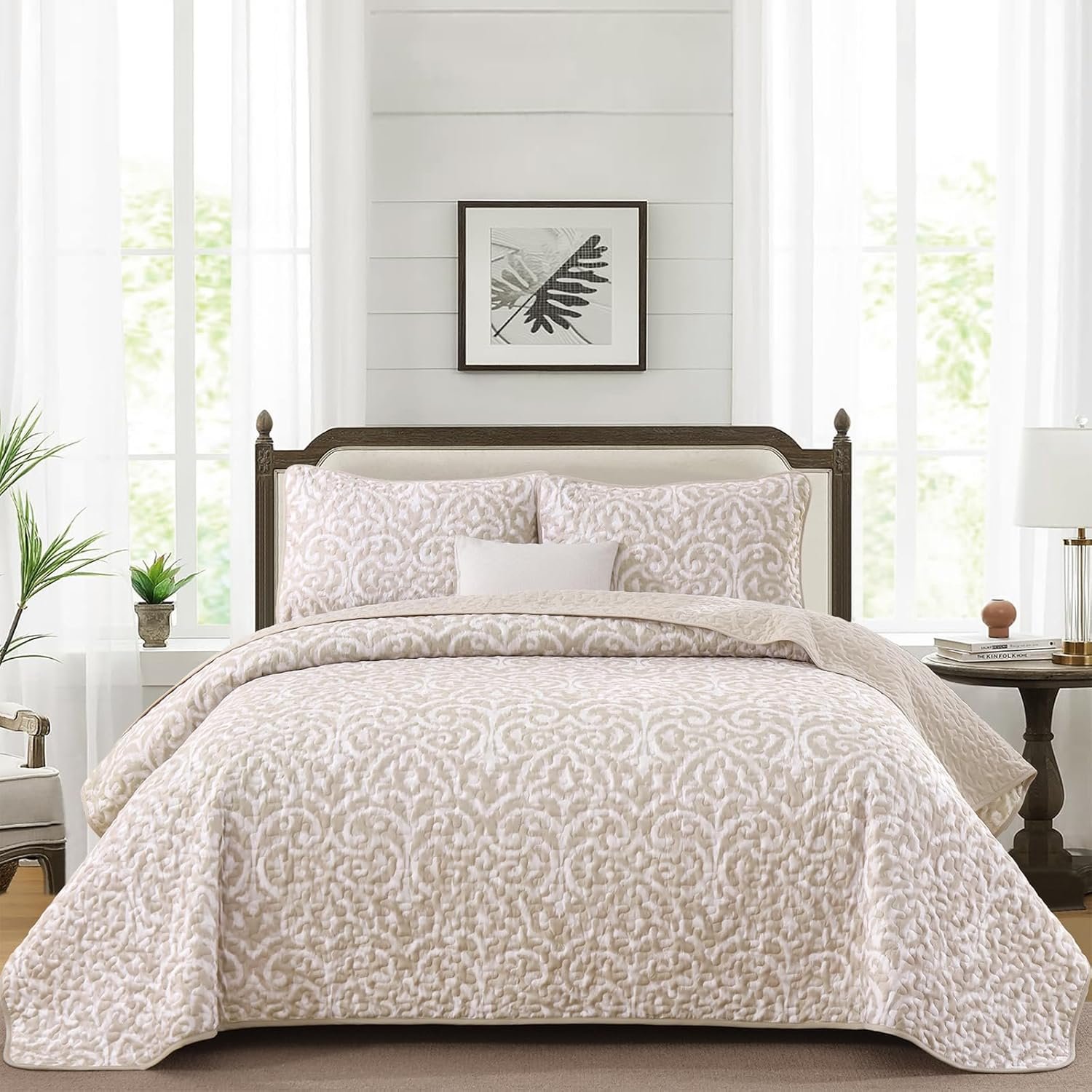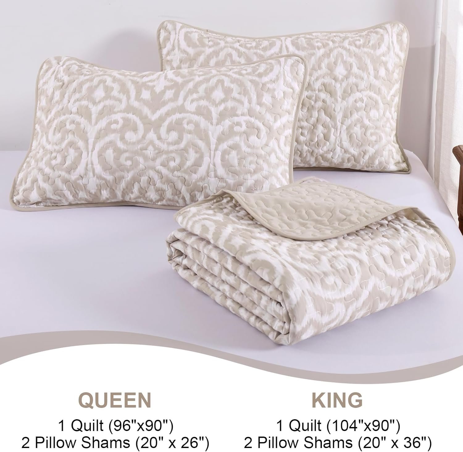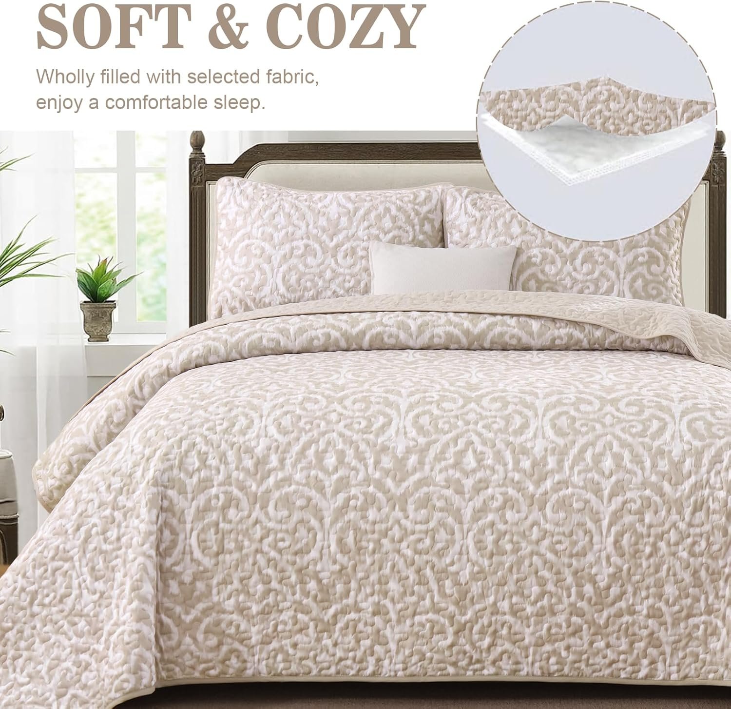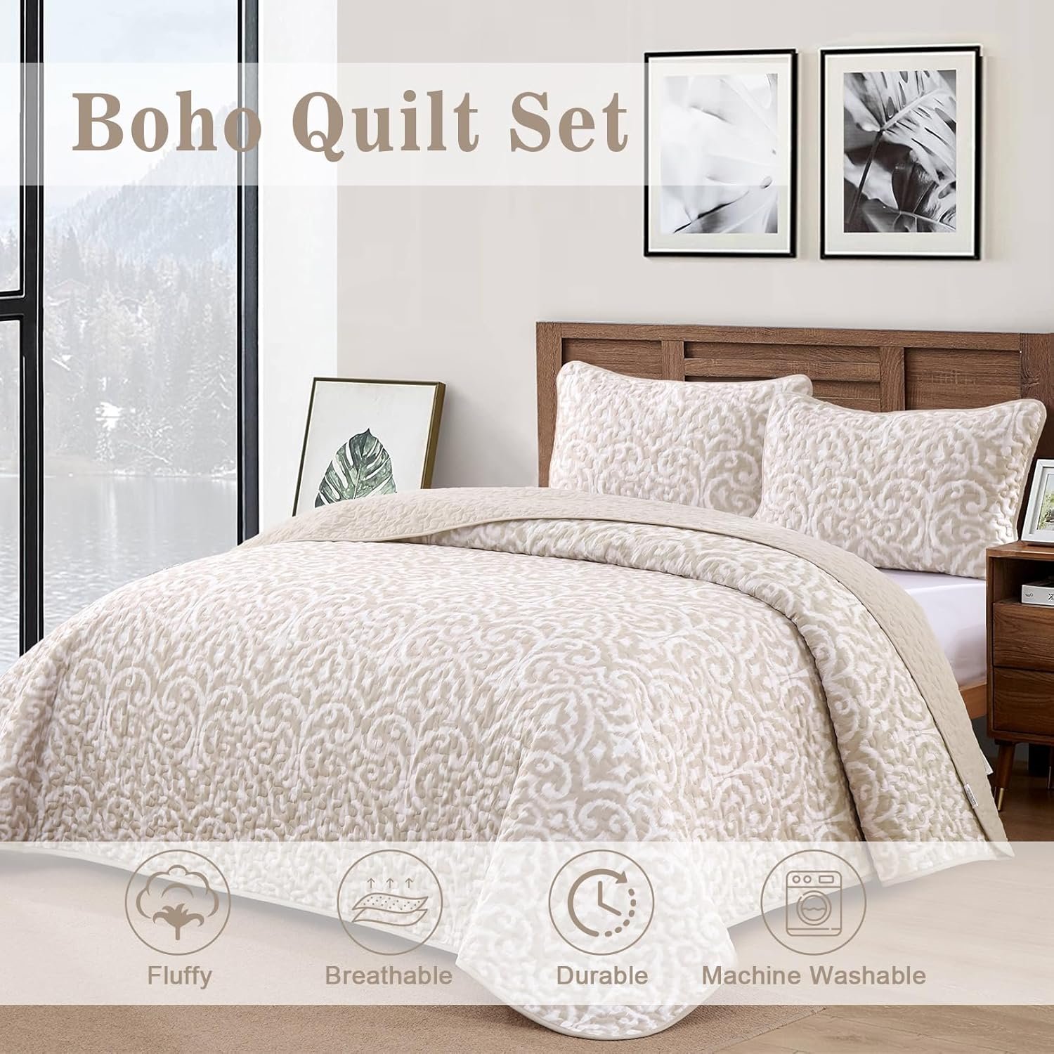 PERFECT BED QUILT – Presenting a sophisticated and chic look, our boho quilt set features a khaki pattern design that complements any home decor.The classic pattern adds a touch of elegance, making it a must-have for your bedroom.