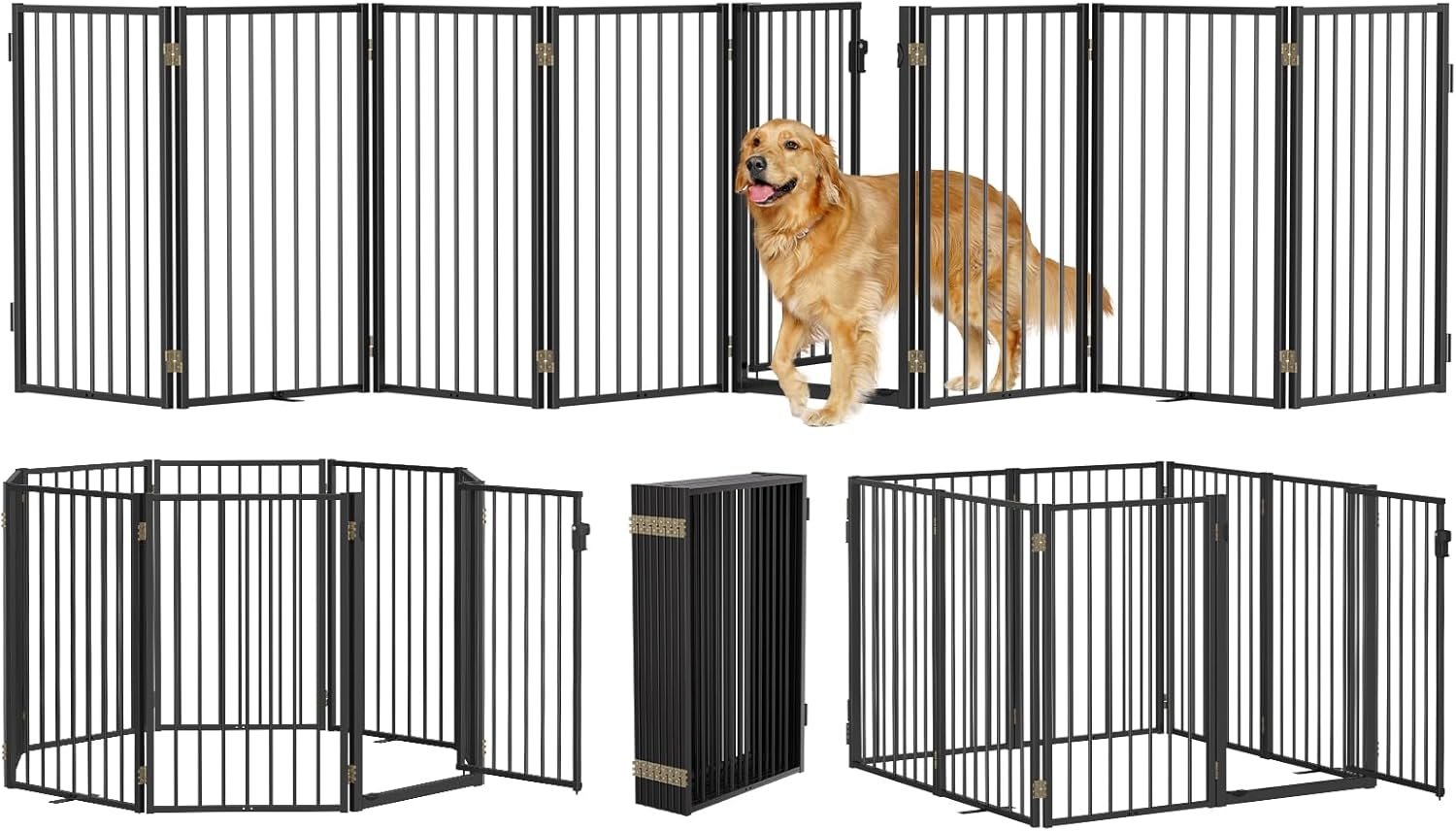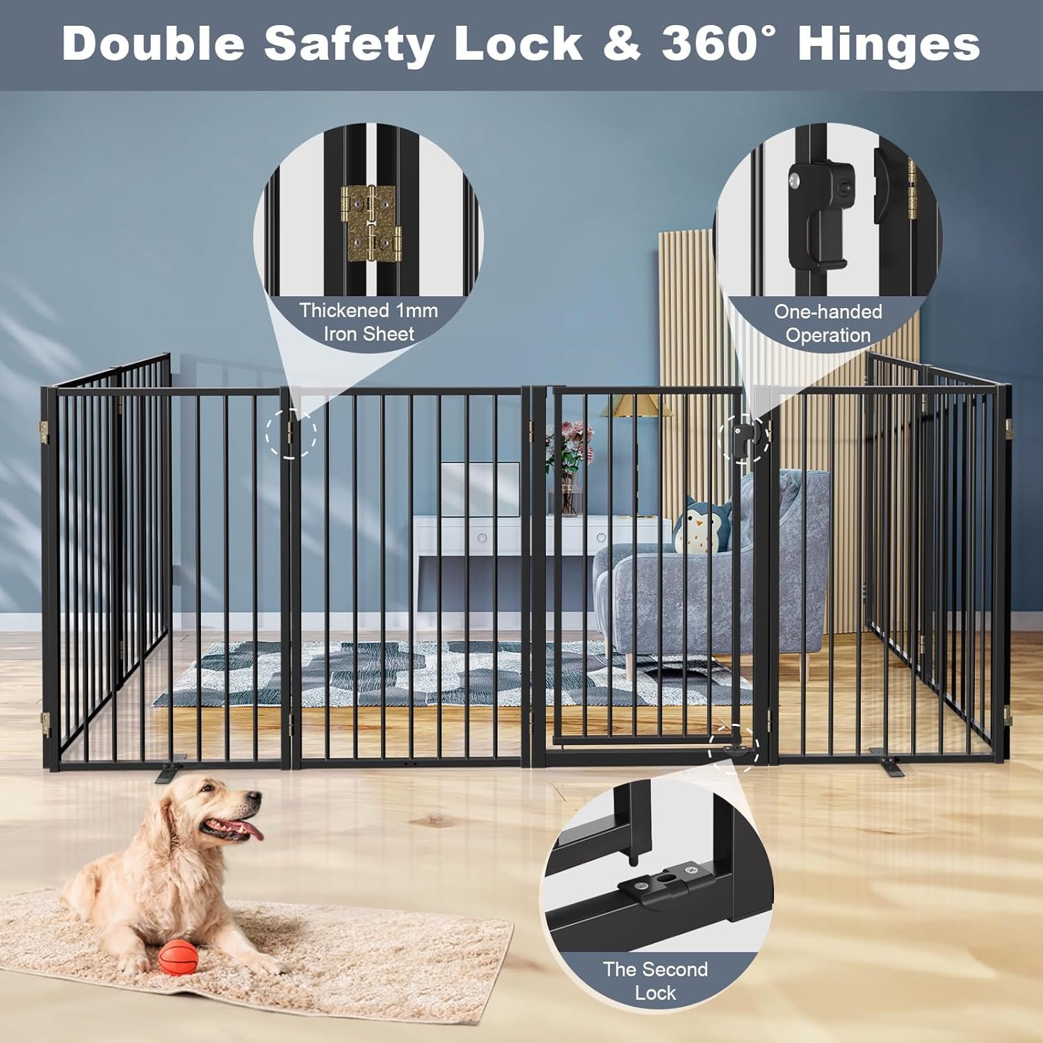 Pet Gate With Door: Pet gate with walk though door,convenient for you to enter and exit.The door is equipped with a double lock system to ensure the safety of the door and will not be easily opened by dogs