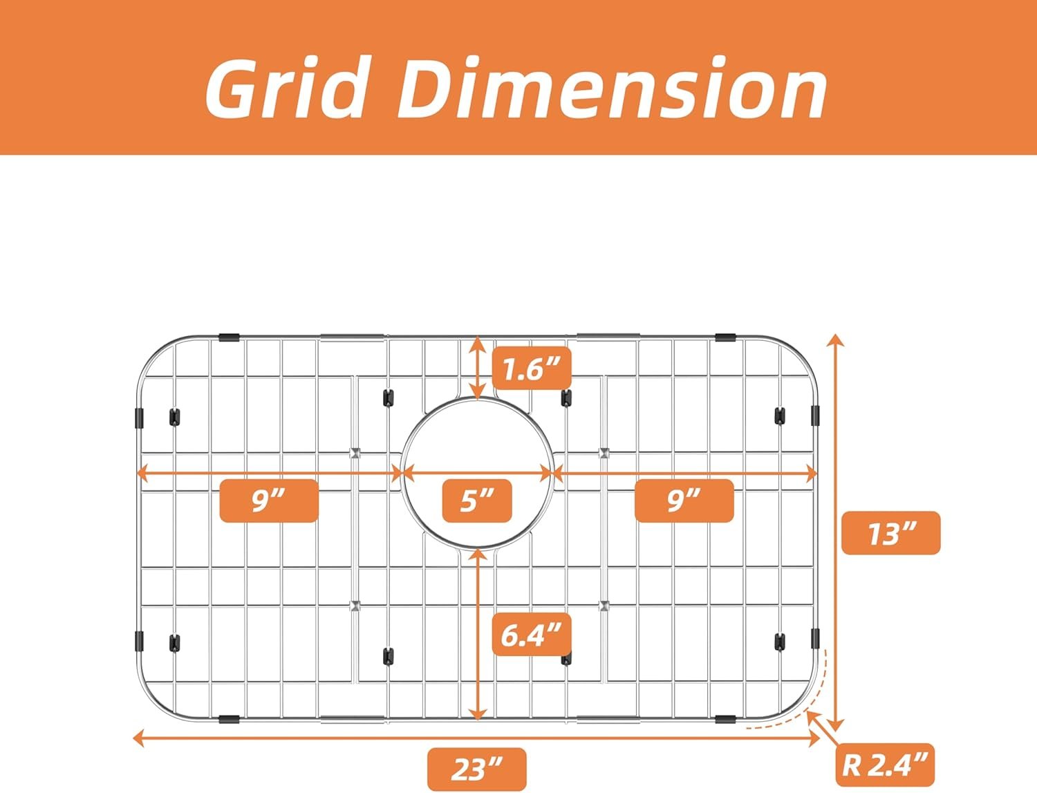 Kitchen sinks have different corner radius.This sink rack with corner radius 2.4 inch.Please make sure the grid of your choice have the same corner radius as the grid you choose.