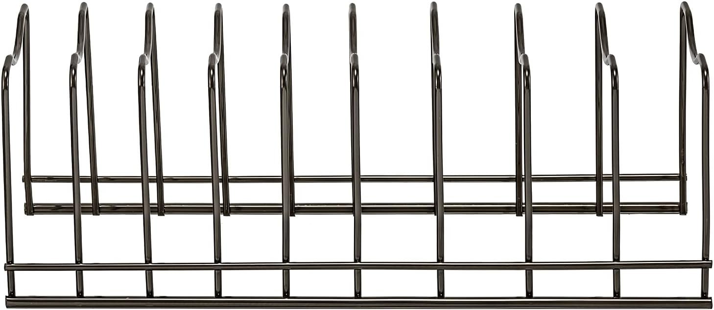 Customers find the storage rack sturdy and well worth its price, with positive feedback about its functionality and ability to organize pots and pans lids. The rack fits pots and pans perfectly, though one customer notes that space for lids with larger handles is too narrow.