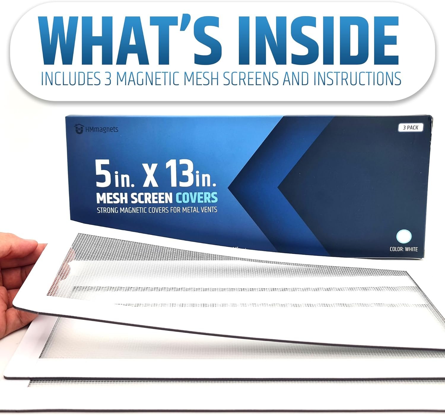 CHECK SIZE & MAGNETISM: Ensure your vent is magnetic; these screens won’t attach to wood, plastic, or aluminum. Test with a magnet to verify. Our 5”x13” screens fit vents 5″ to 6″ wide and 13″ to 14″ long. Each box contains 3 screens.