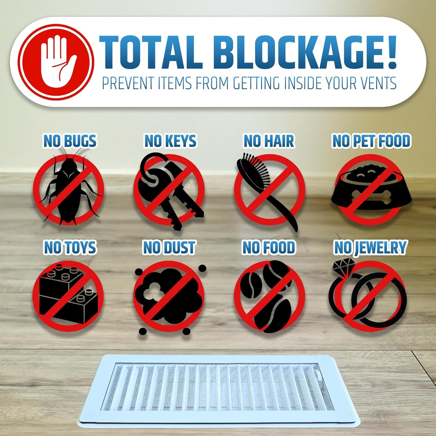 TOTAL BLOCKAGE – 360° PROTECTION: Prevent items from entering your vents with 360° protection. Our screens block insects, bugs, and small items like keys, coins, toy parts, pet food, hair, and more. Ideal for kitchens, bathrooms, and living areas.