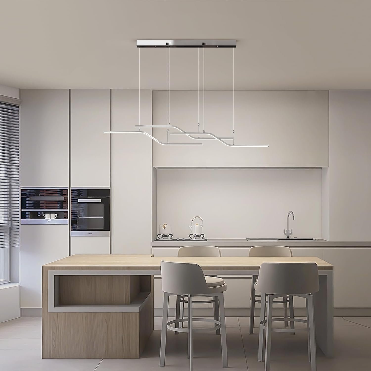 Upgraded Hanging Pendant Light Fixture: Made of high-quality aluminum and high-transparent silicon with chrome finished, the modern LED pendant light is corrosion-resistant and fade-resistant. Selected LED chips make the modern pendant lighting more energy-saving and no flicker. The upgraded electroplated surface gives the modern dining room chandelier a more advanced look and feel