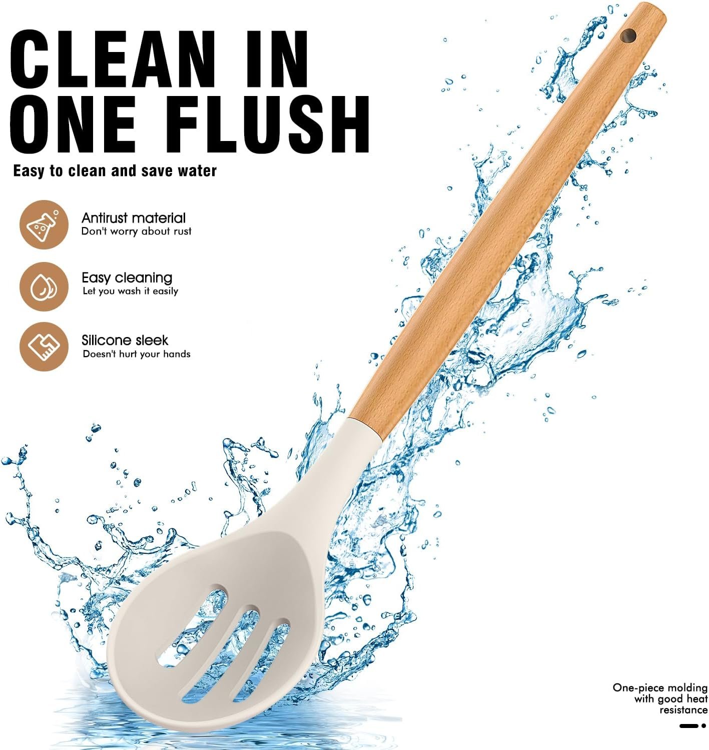 NON-DEFORMABLE, EASY TO CLEAN: We’ve designed these silicone kitchen utensils sets with stainless steel cores wrapped in silicone for shape retention and flexibility. No warping or cracking, no hassle. The silicone utensils for coking one- piece construction ensures no pesky gaps where food can hide, making cleaning a breeze. Due to the unique nature of wooden handles, we recommend handwashing