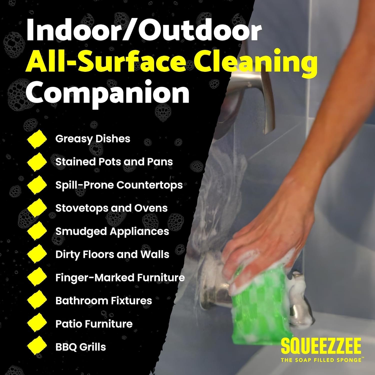 WON’T SCRATCH OR STAIN SURFACES: You can trust this double-sided scrub sponge to clean a wide array of surfaces, from pots and pans to furniture and floors, without any streaks or residues left behind. Plus, Squeezzee won’t scratch or stain the surfaces. It’s a gentle yet effective choice for keeping your home clean day in and day out.