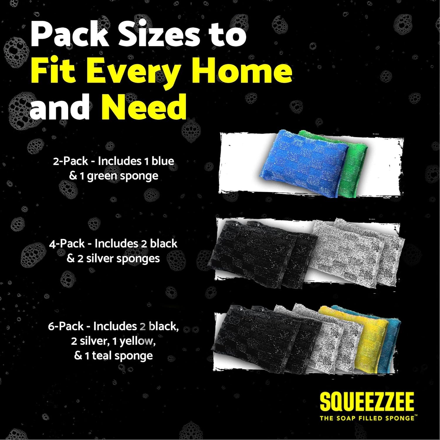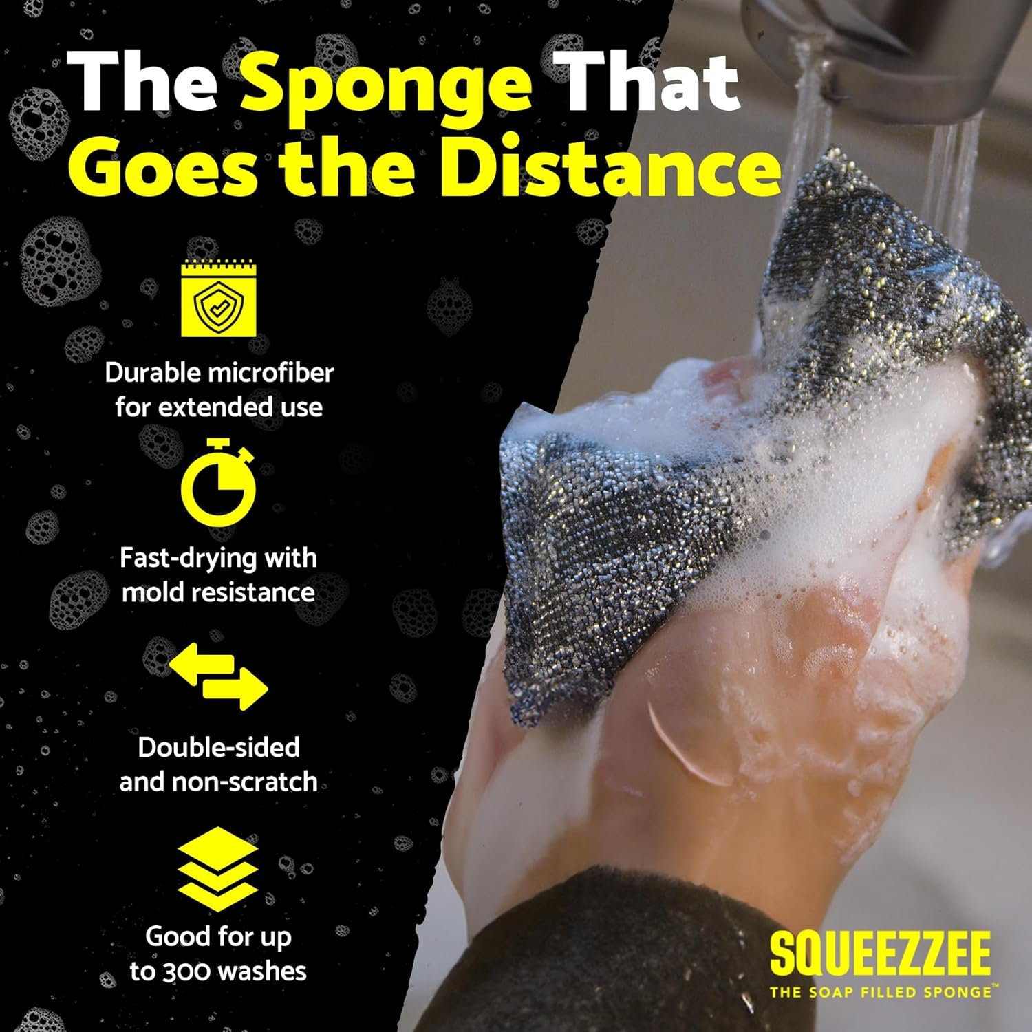 BUILT TO ENDURE & FEND OFF THE YUCKY STUFF: That’s our sponge for you. You can clean up to 300 items with a single SQUEEZZEE before reaching for a new sponge. They’re available in packs of 1, 2, 3, or a hefty pack of 8 – making it a breeze to have them handy in different corners of your home. Plus, the microfiber fabric ensures that they won’t harbor the gross buildup of typical sponges.