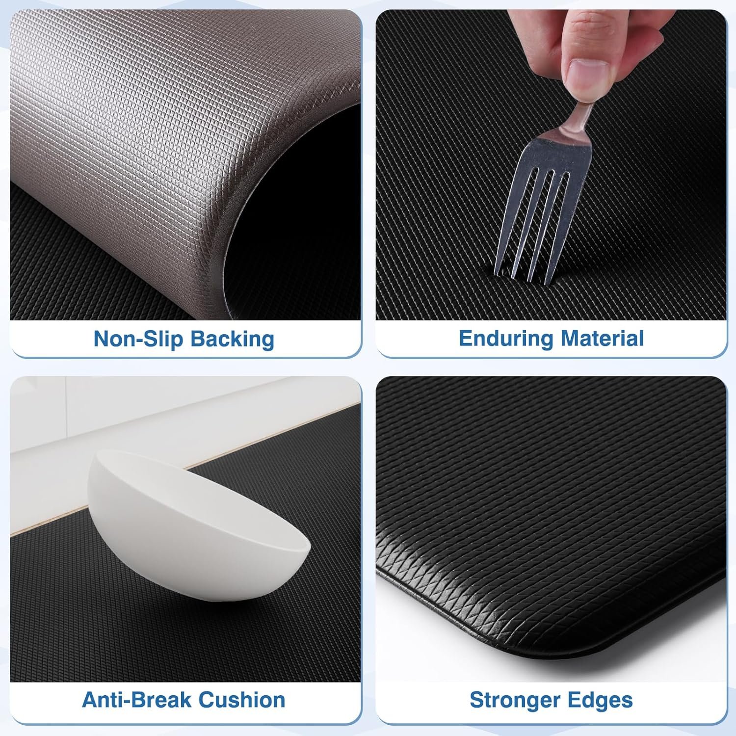 Anti-Fatigue Comfort: StepRite 0.4 inch thick kitchen mat offers supportive cushioning that eases strain on your feet and joints, allowing you to stand comfortably for longer periods in the kitchen