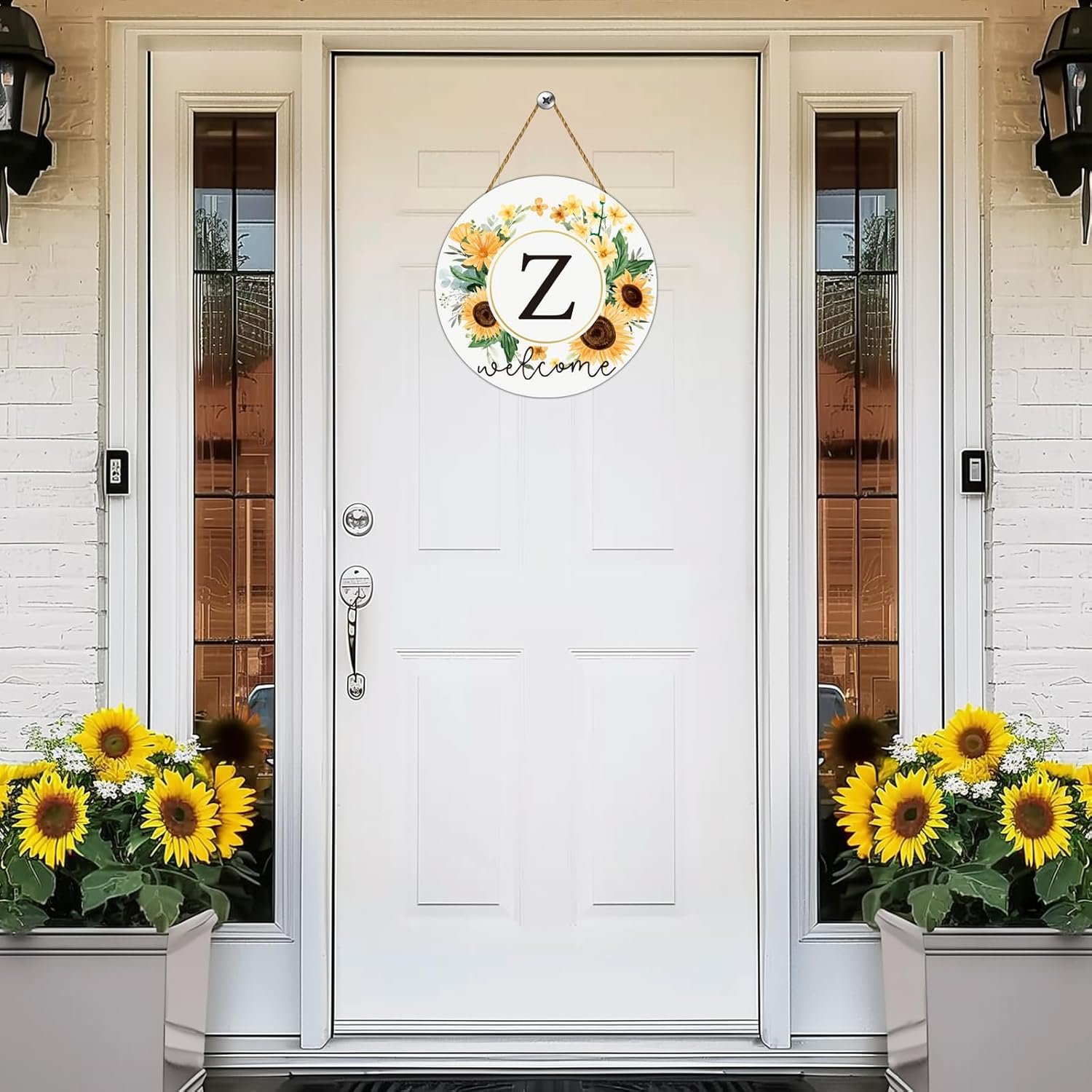 Unique Design: Summer sunflower family last name initial Z wreath, printed with the word “Welcome”, welcome the arrival of summer, welcome your guests, vibrant colors, bright tones to light up your home, perfect for decorating your home in the summer