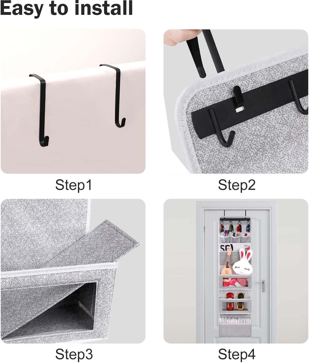 【Versatile Storage】The over door hanging holder is great for children, tweens, teens, and adults; Perfect for cosmetics, baby essentials, slippers, scarves, hats, towels, diapers, baby clothes, bottles, toys, snack pantry foods, kitchen supplies, and other items. Hangover doors, mount on walls or mount on interior doors.