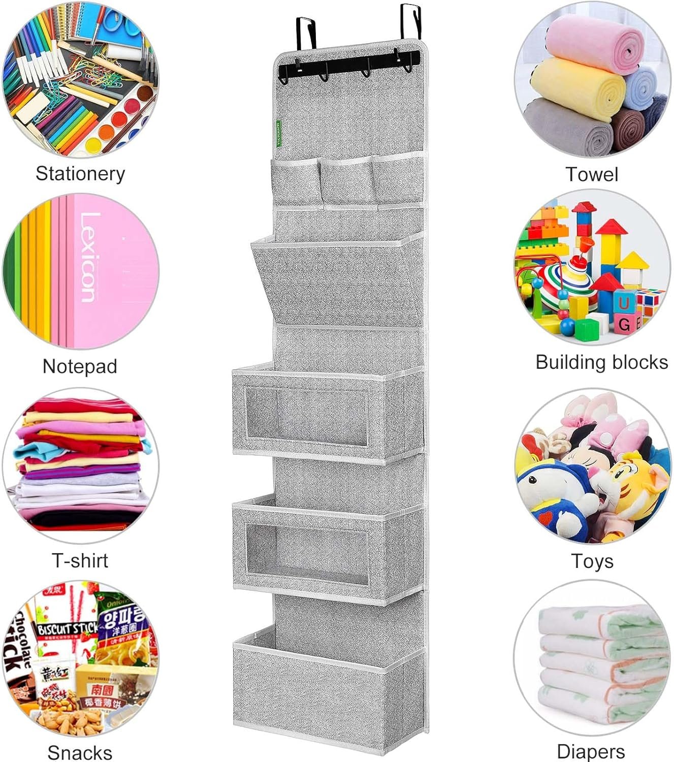 【Extra Large Capacity&Clear Window Hanging Organizer】The extra-large size of baby organizers and storage drawers is 49.6″ (H) x 13.78″ (W) x 5.12″ (D), This over the door pantry organizer is suitable for 1.98in thick standard home-use door. The door organizer can add a lot of extra storage space to your limited living space. Baby organizers and storage drawers are the best gifts for you to organize and store any items that you want to storage.