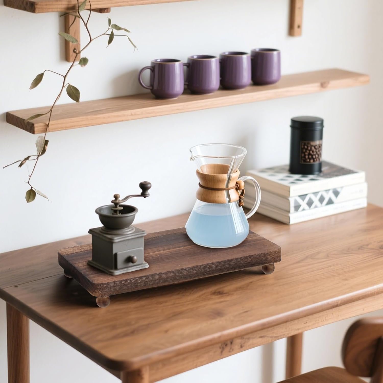 Premium Wood Construction: Crafted from high-quality solid wood with hand-polished surfaces, this wood pedestal for the kitchen is burr-free, odorless, and fade-resistant. The sturdy 4-leg structure ensures stability for daily use. Retains natural wood texture for authentic charm while being durable enough for long-term home or commercial use.