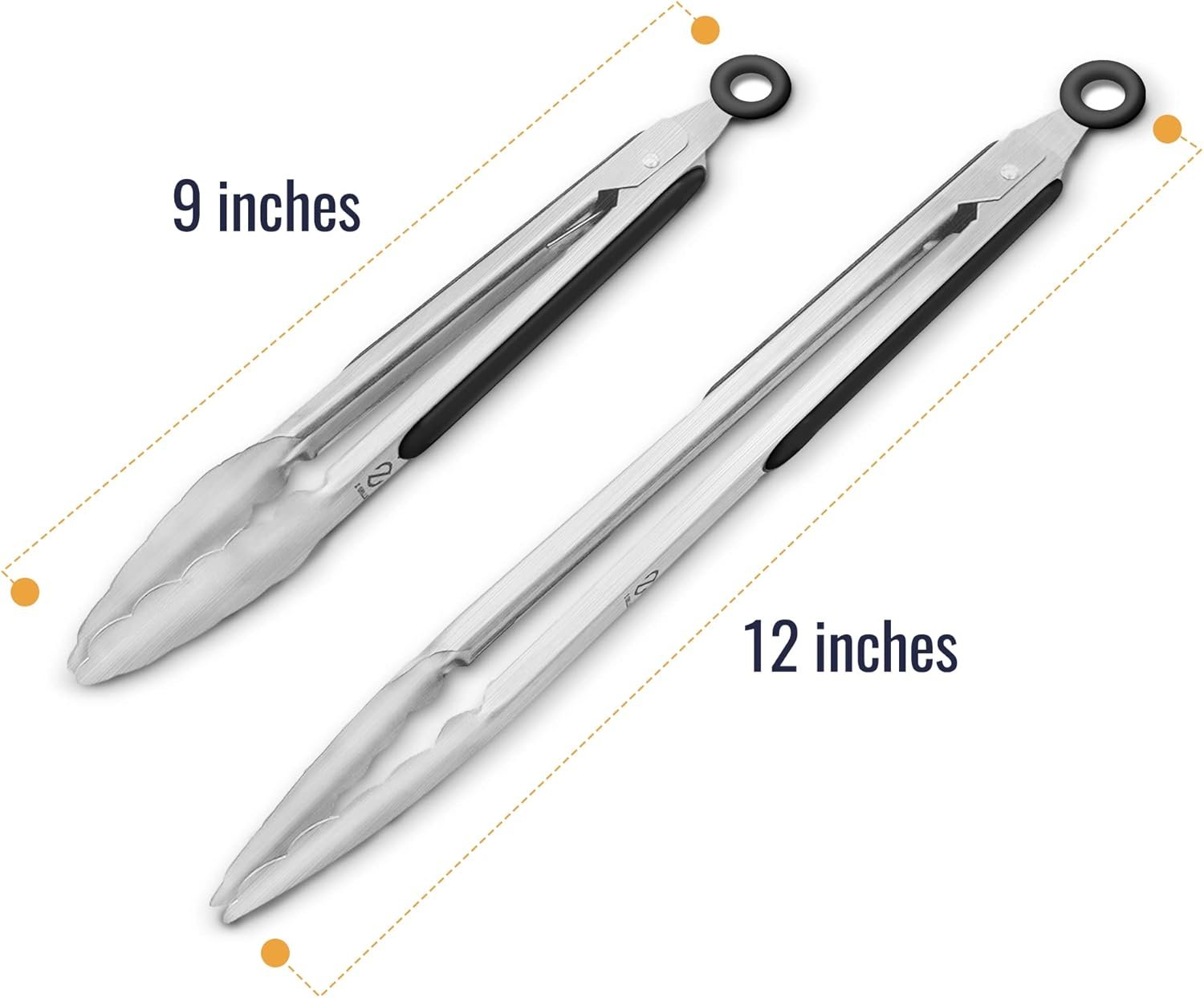 PREMIUM STAINLESS STEEL MATERIAL – Constructed from top quality brushed stainless steel, the Z Grills kitchen tong set is sturdy and built to last. This set of 2 contains a 12-inch and 9-inch tongs (or 14-inch and 16-inch tongs optional), offering great versatility for all your cooking, grilling, or barbecue (BBQ) needs!