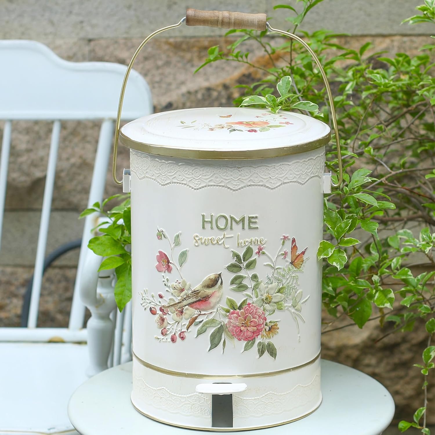 【Vintage Design】 The metal trash can is mainly made of high-quality iron. The vintage shell design makes it have excellent durability. The creative waste bins has unique flower and bird patterns, which can feel the artistic atmosphere indoors and outdoors